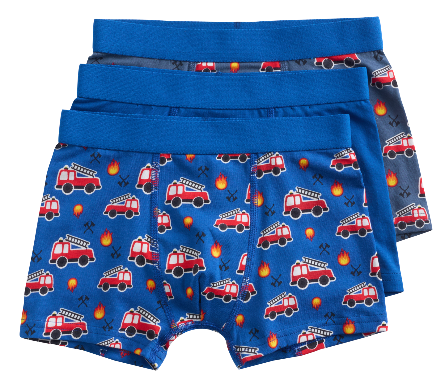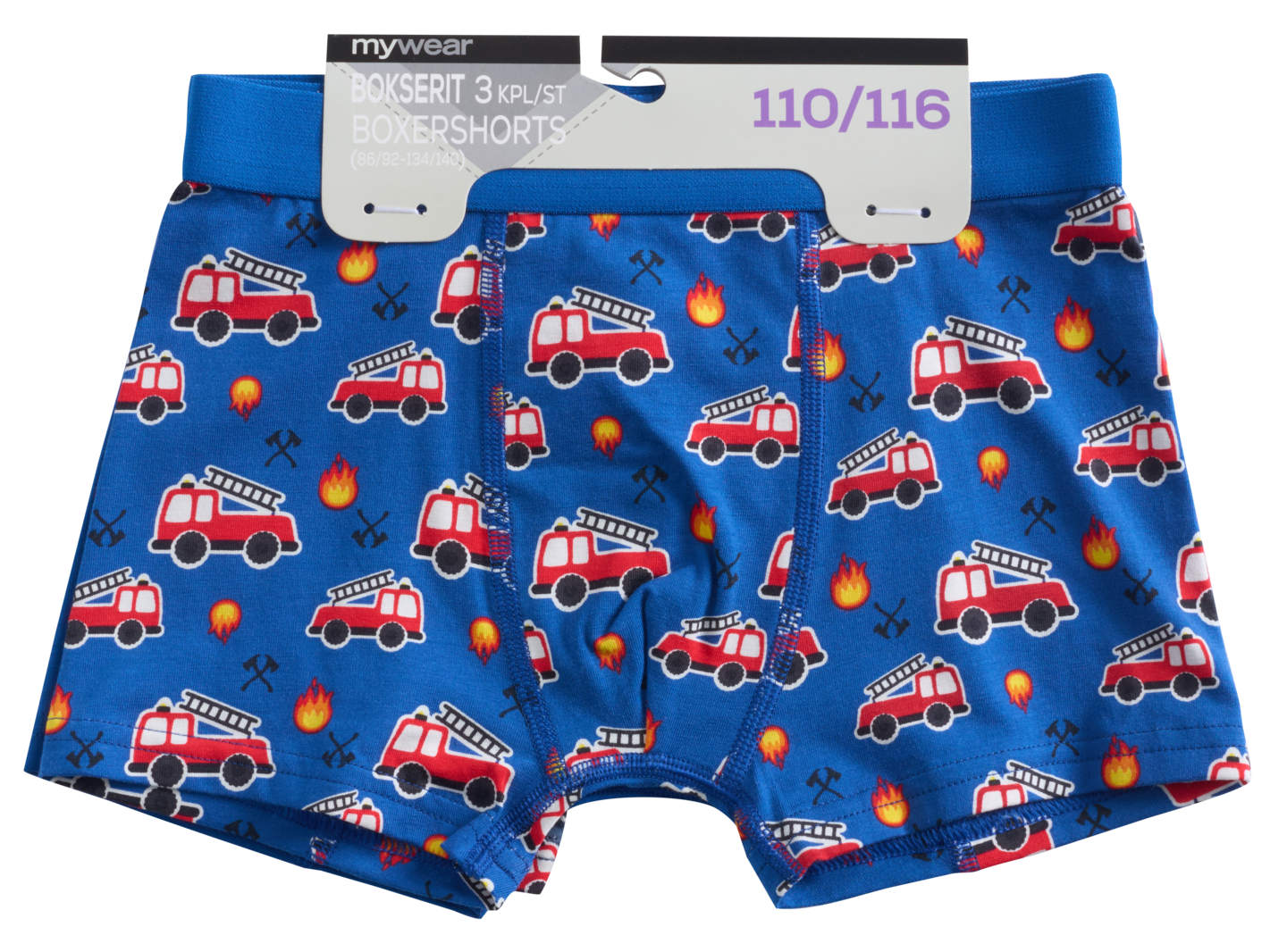 Lasten paloautokuosiset bokserit, jossa yksivärinen vyötärökuminauha. Nipussa 2 kuosillista ja 1 yksivärinen. Materiaali 95% puuvillaa 5% elastaania.Tuote on GOTS-sertifioitu. GOTS (Global Organic Textile Standard) on kansainvälinen merkki luomupuuvillalle. Vähintään 70 prosenttia kuiduista on kasvatettava luonnonmukaisesti. Standardi määrittelee korkeat ympäristökriteerit luomutekstiilien koko toimitusketjussa ja edellyttää myös sosiaalisten kriteerien noudattamista. Lue lisää GOTS:stä täältä: global-standard.org.