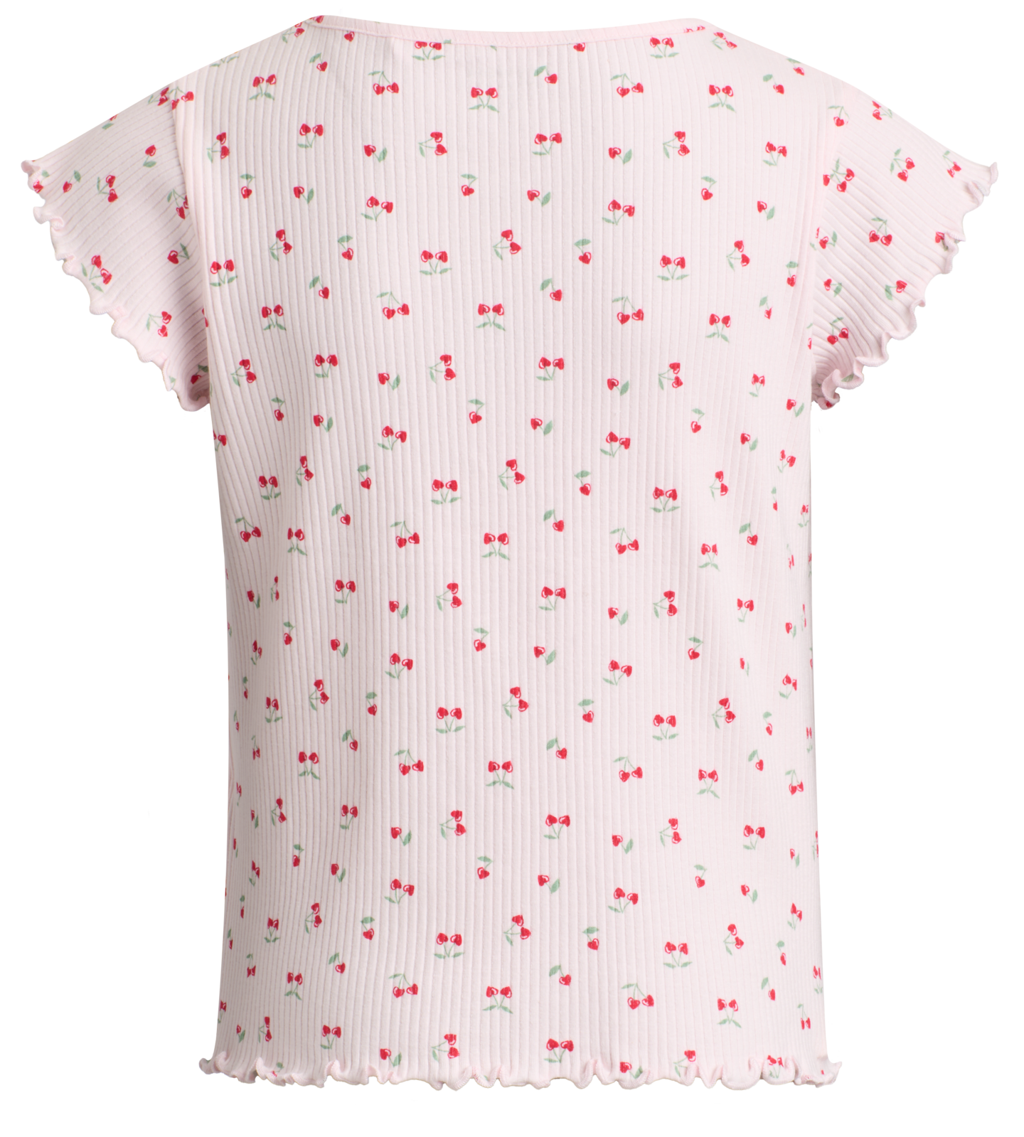 Lasten lyhythihainen pyjamapaita, jossa painettu kirsikkakuosi. V-pääntie. Hihansuissa ja helmassa frillahuolittelu. Materiaali miellyttävää ja joustavaa puuvilla/elastaani-sekoitusta. Tuote on GOTS-sertifioitu. GOTS (Global Organic Textile Standard) on kansainvälinen merkki luomupuuvillalle. Vähintään 70 prosenttia kuiduista on kasvatettava luonnonmukaisesti. Standardi määrittelee korkeat ympäristökriteerit luomutekstiilien koko toimitusketjussa ja edellyttää myös sosiaalisten kriteerien noudattamista. Lue lisää GOTS:stä täältä: global-standard.org.