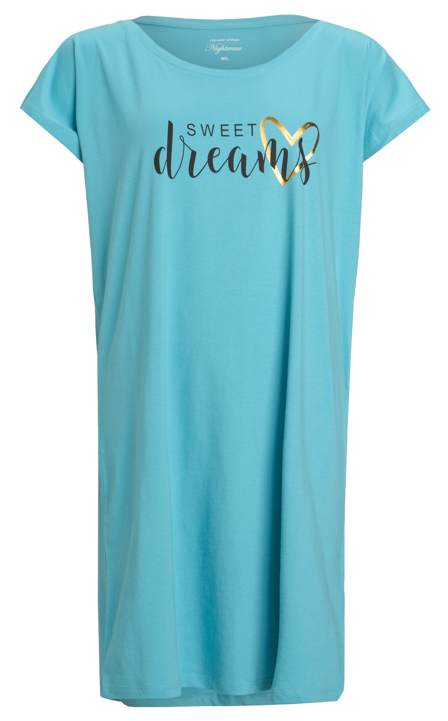 Naisten holkkihihainen paituli o-pääntiellä, edessä Sweet Dreams- painatus. Mallissa on reilu mitoitus. Selän pituus koossa M on 93cm. Materiaali puuvillaa. Valitsemalla puuvillatuotteitamme tuet sitoutumistamme Better Cottonin tavoitteisiin. Tämä tuote on hankittu massatasejärjestelmän avulla, joten se ei välttämättä sisällä Better Cotton -puuvillaa. Lue lisää osoitteesta bettercotton.org/massbalance.