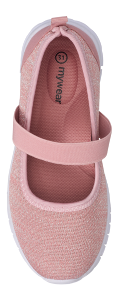 Lasten mywear Fiaba ballerinoissa on kevyt phylon ulkopohja. Neulepäällisessä on kauniita metallinhohtoisia lankoja. Päällä oleva venyke pitää kengät hyvin jalassa. Irrotettava sisäpohjallinen on miellyttävää tekstiiliä.
