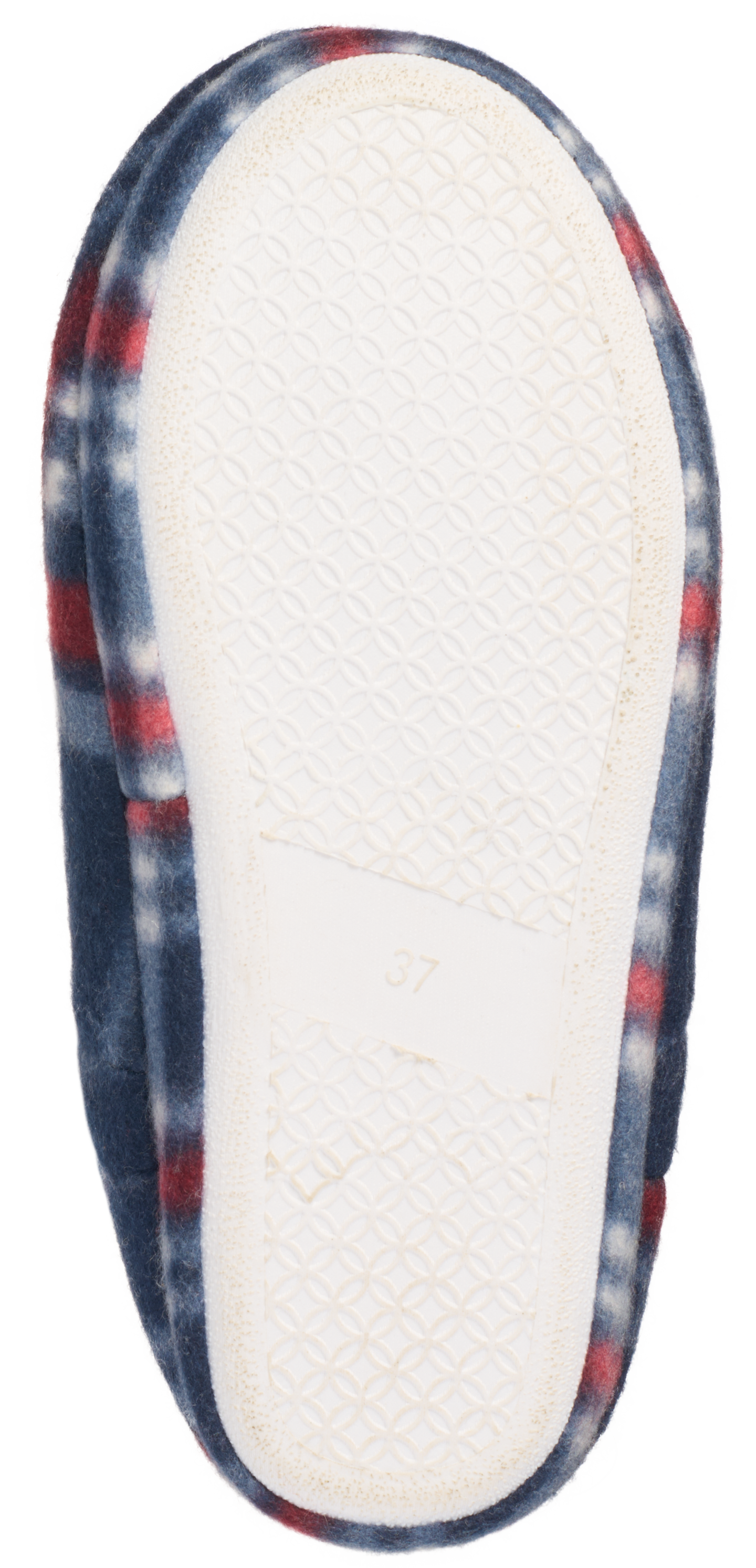 Mywear Hilma naisten kotitossut. Varrellinen jalkaan vedettävä malli. Päällinen ruudullista, pehmeää tekstiiliä ja ulkopohja tpr-kumia.