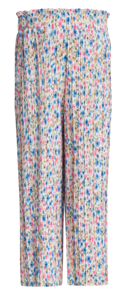 Raikkaan keväisesti kuvioidut, satiinihousut, joissa leveät lahkeet. Joustava vyötärö. Materiaali 100% polyesteri.