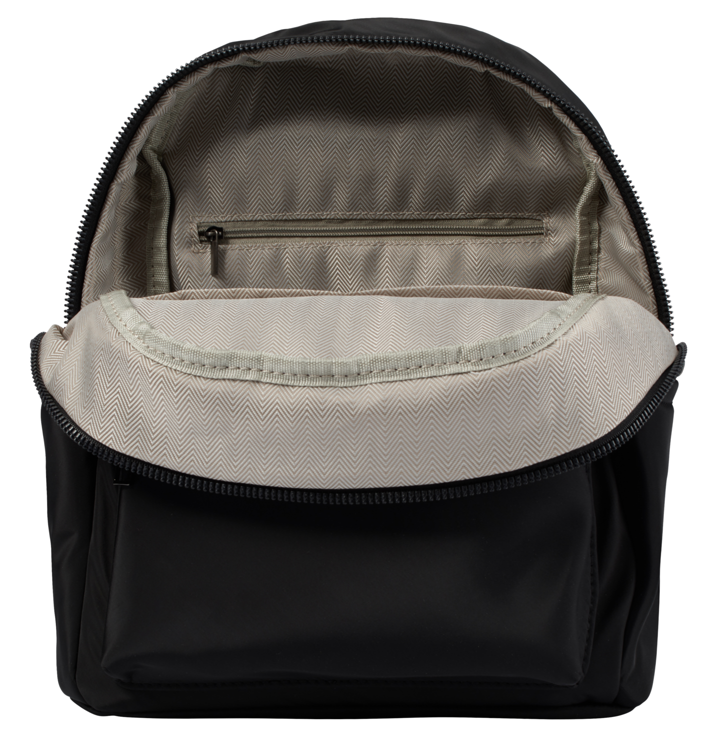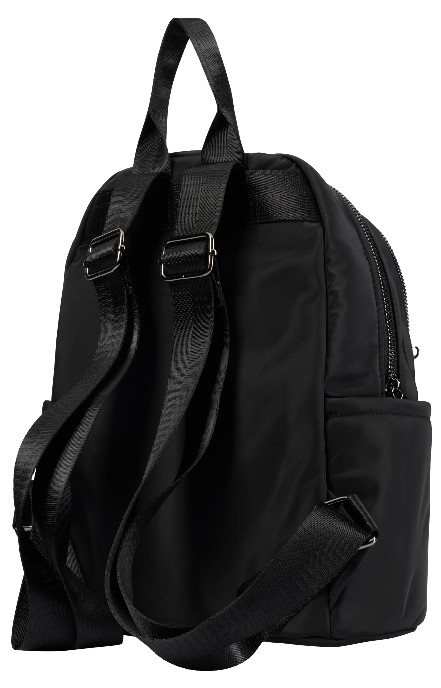 Upea reppu, jossa on kaksi vetoketjulla suljettavaa osiota hopeisilla yksityiskohdilla. Laukussa sisällä on vuori, ja vetoketjullinen pikkutasku pienille tavaroille. Repussa on olkahihnat, jotka voi säätää täysin oman mukavuutesi ja käyttötarkoituksesi mukaan. Olkahihnan pituus 45-85 cm