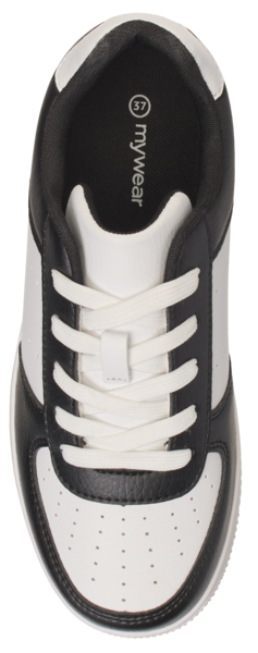 Miesten mywearin tennareiden päällinen on helppohoitoista nahkajäljitelmää. Tennareissa on nauhakiinnitys. Sisävuori on tekstiiliä ja ulkopohja on termoplastista kumia.