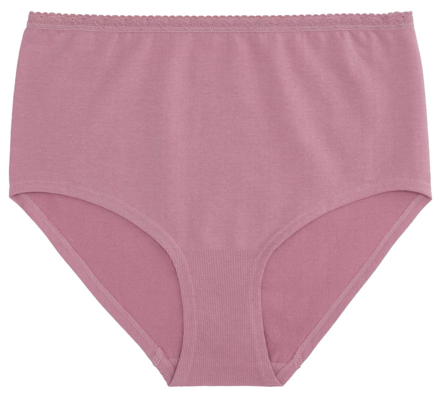 Saumattomat vyötärölle ulottuvat alushousut. Pitsikuvioinen 1 cm levyinen vyötärökuminauha. Materiaali GOTS puuvillaa, kierrätettyä polyamidia ja elastaania.
