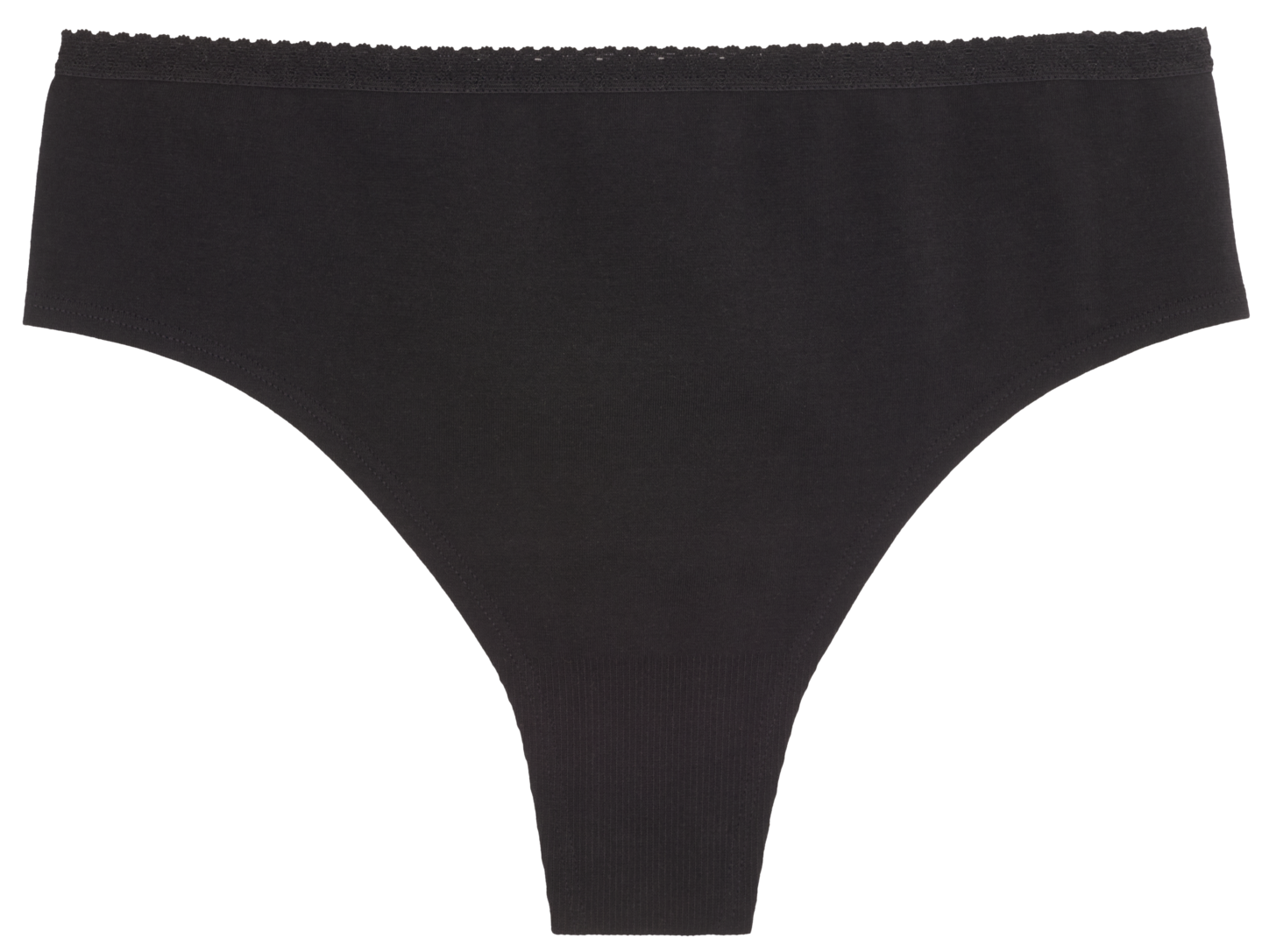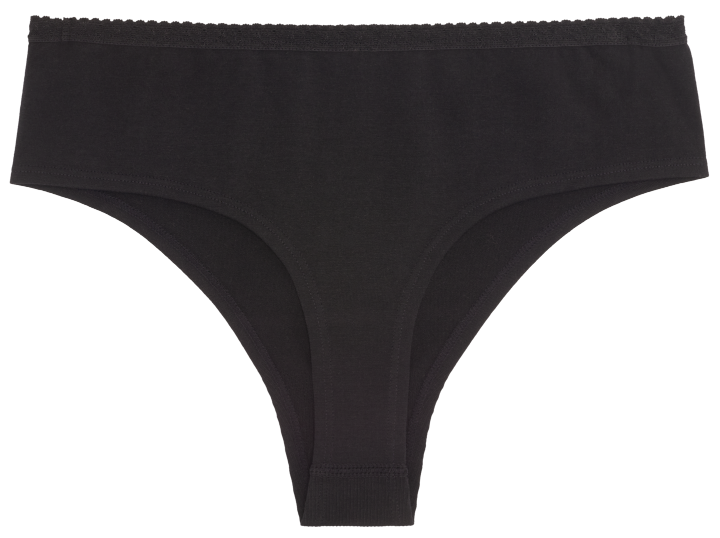 Saumattomat brazilian-malliset alushousut. Pitsikuvioinen 1 cm levyinen vyötärökuminauha. Materiaali GOTS puuvillaa, kierrätettyä polyamidia ja elastaania.