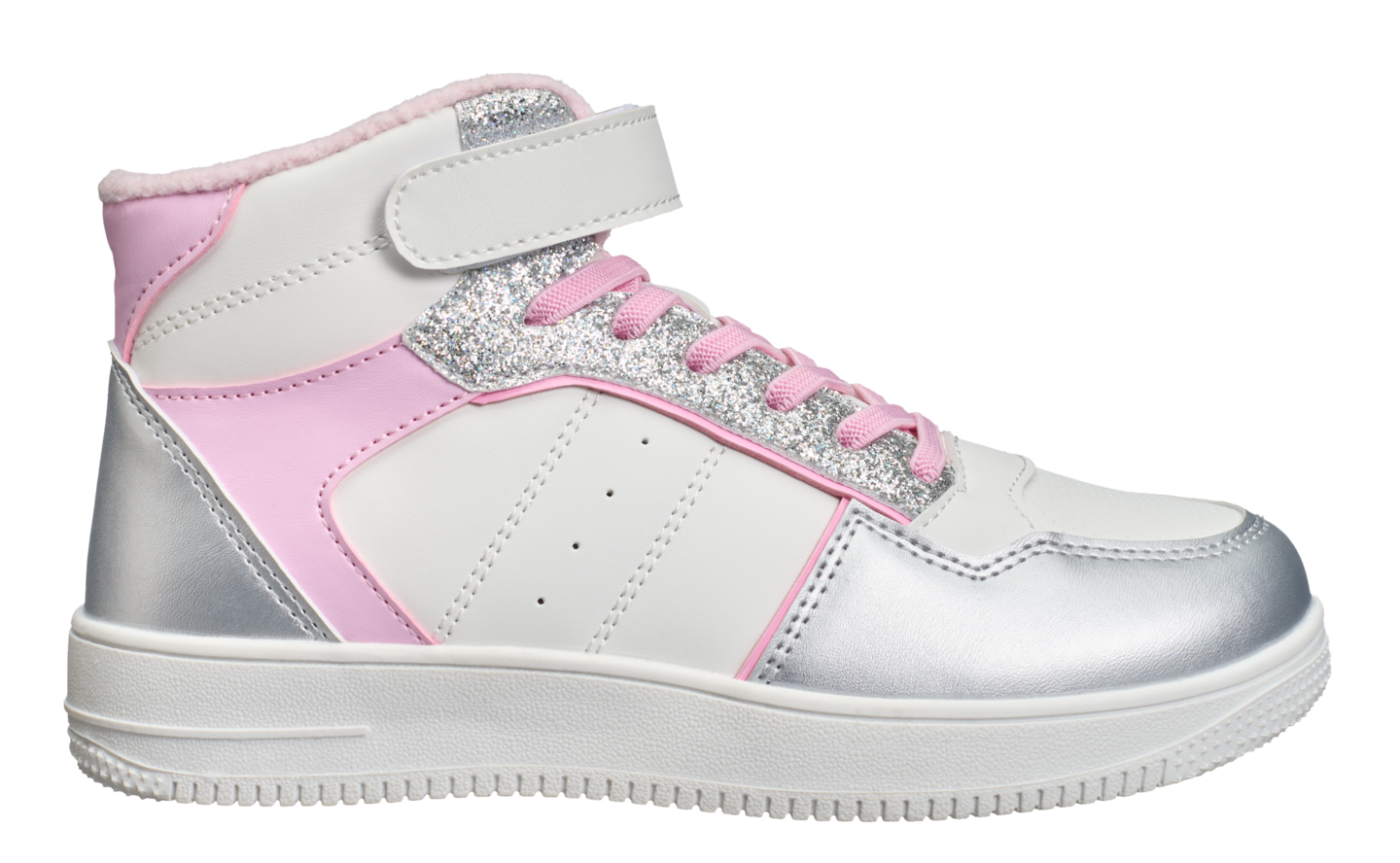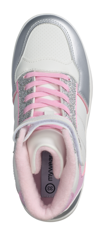 Lasten mywear Terra varsitennareissa on pukemista helpottava tarrakiinnitys sekä venykenauhat. Kengissä on trendikäs pinkki/valkoinen/hopea väriyhdistelmä, lämmin fleecevuori sekä TPR-kumipohja.