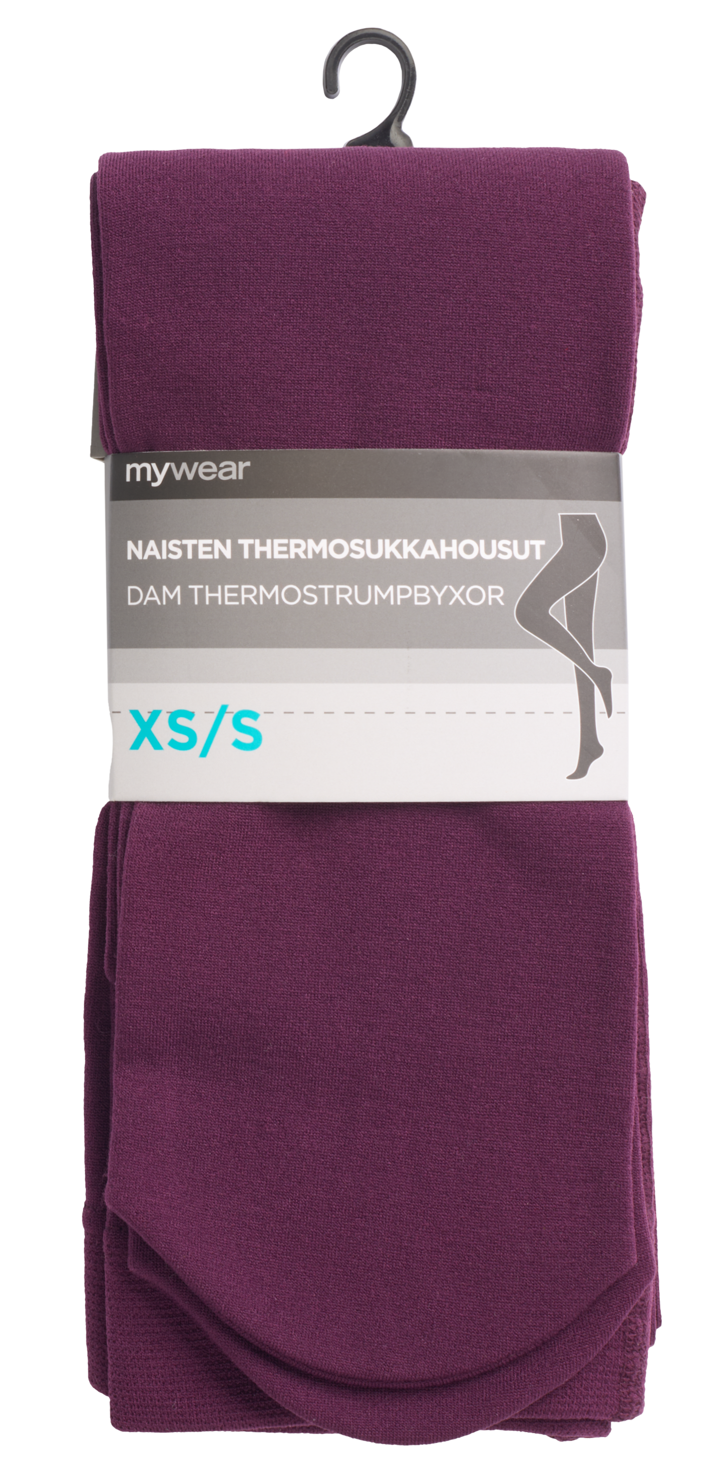 Naisten yksiväriset ja lämpimät thermosukkahousut, sisältä pehmeäksi harjattu pinta. Materiaali 97% polyesteri, 3% elastaani.