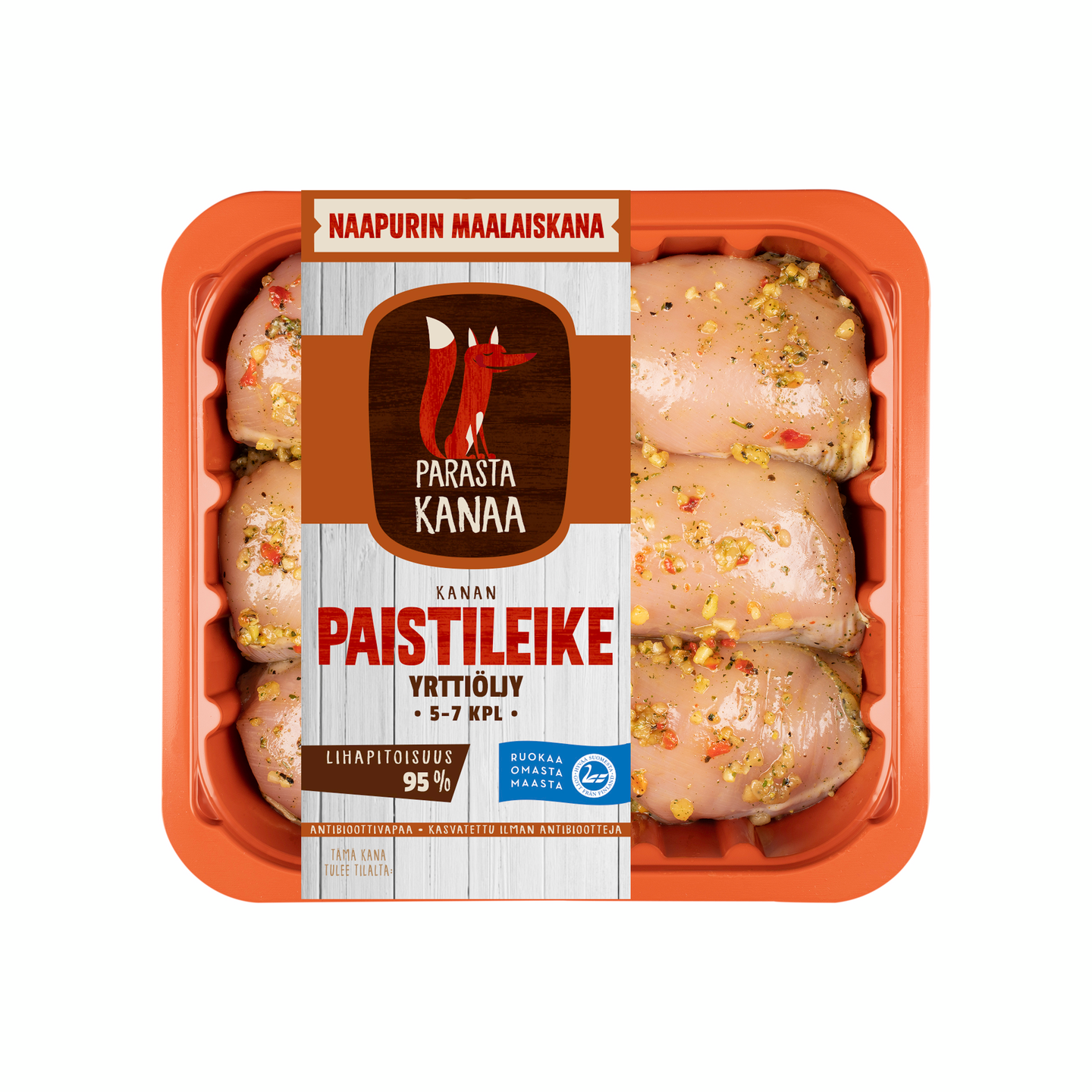 Naapurin Maalaiskanan mehevät Yrttiöljyn maussa maustetut Paistileikkeet valmistetaan ilman lisäaineita ja lisättyä vettä. Maista ja tykästy! Yksittäisen tuotteen keskimääräinen paino on 600 g.
