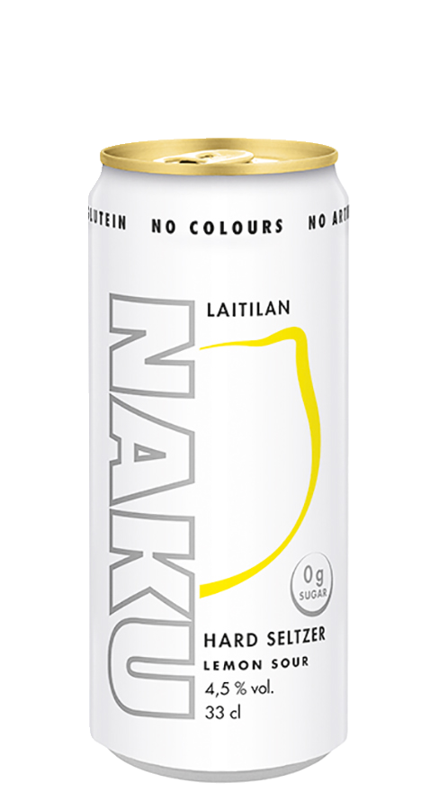 Sitruunanmakuinen makeuttamaton alkoholijuoma. Laitilan NAKU Hard Seltzer Lemon Sour 4,5 % on nimensä mukaisesti riisuttu kaikesta turhasta. Se on juoma heille, jotka haluavat virkistyä luonnollisesta ja happamasta sitruksen mausta ilman sokeria, väriaineita, keinotekoisia makuja ja gluteenia. Suositellaan tarjoiltavaksi kylmänä.