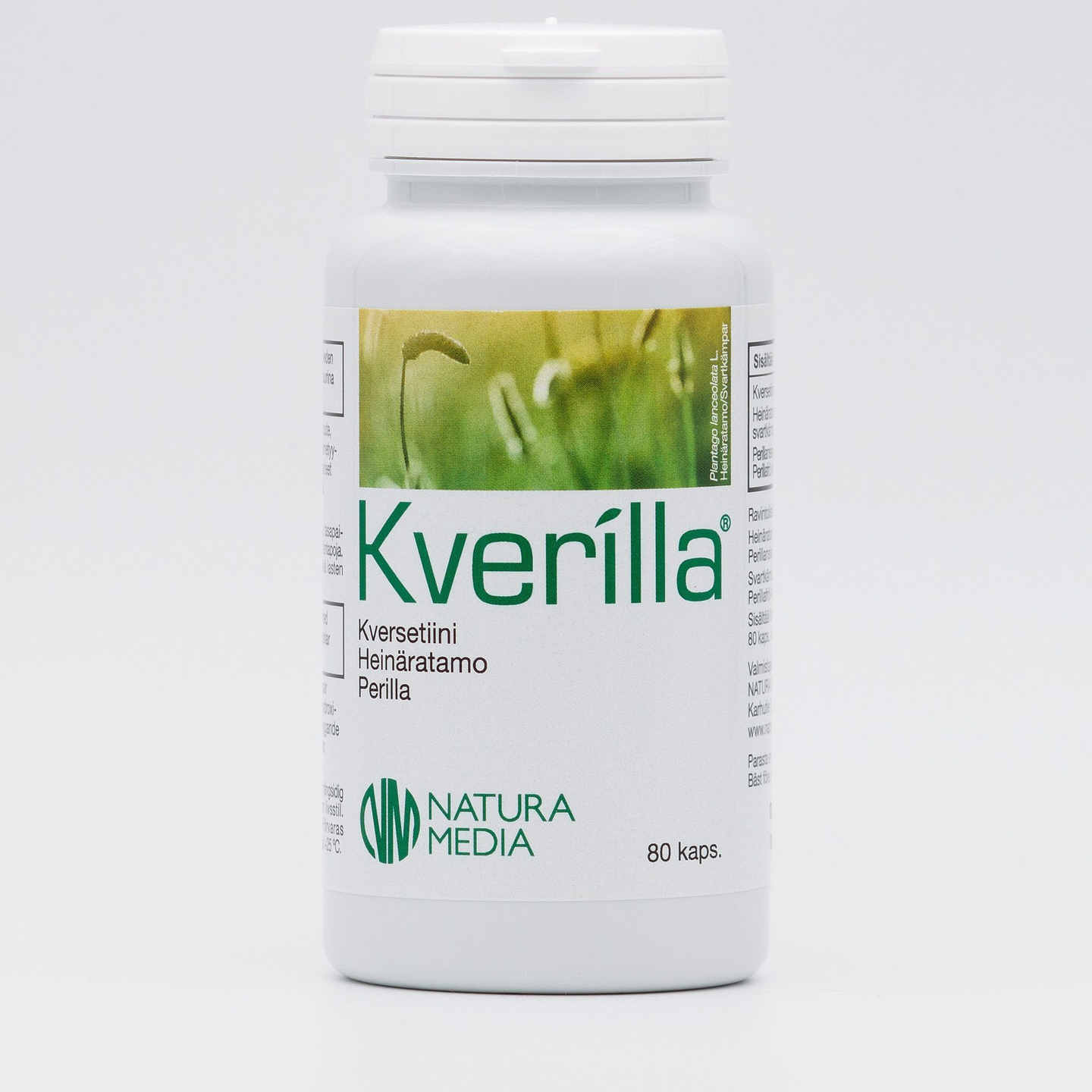 Kverilla®-kapselit sisältävät yhdistelmän kversetiinipitoista Japanin pagodipuun kukkanuppu-uutetta (Sophora japonica L.), perillaa (Perilla frutescens L.) ja heinäratamoa (Plantago lanceolata L.) kasvikapseleissa.