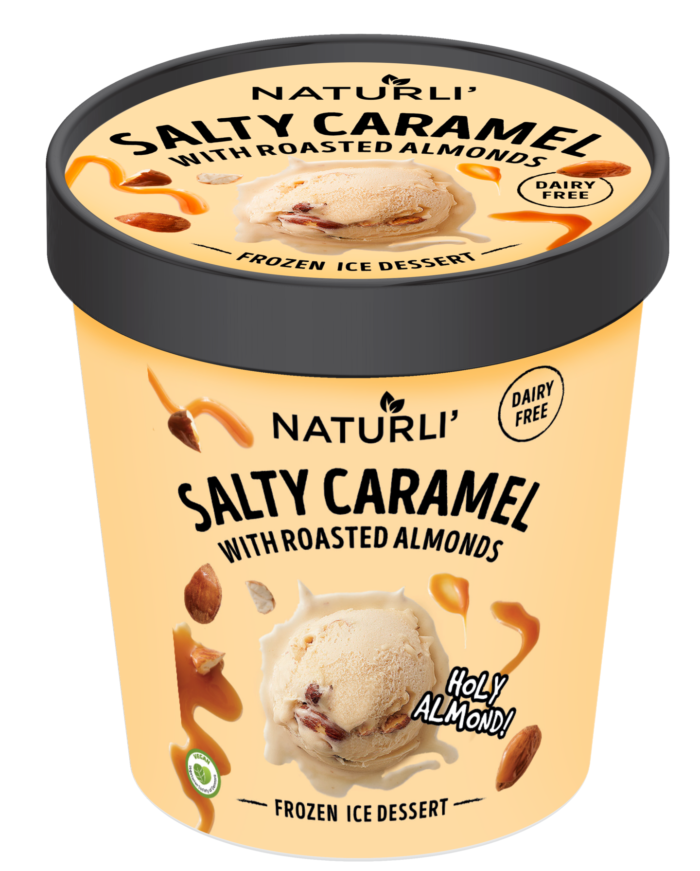 Vegaaninen Naturli' salty caramel ice dream on suunnattu suolaisen kinuskin ystäville, siinä maistuu myös paahdettu manteli, joka rouskuu herkullisesti suussa. Naturli' jäätelö on syötävän pehmeää suoraan pakastimesta.
