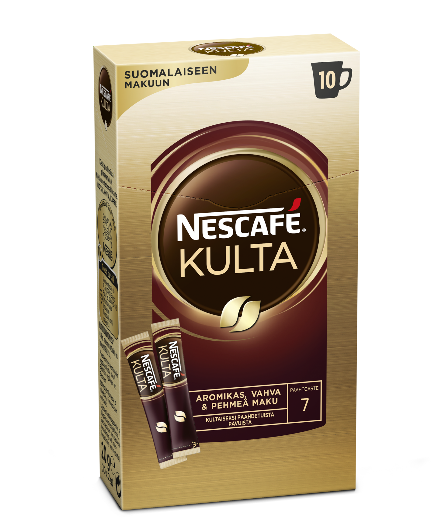 NESCAFÉ Kulta on täyteläinen ja tasapainoinen keskipaahtoinen pikakahvi, jossa on ainutlaatuinen, runsas aromi. Valmista kahvi helposti ja nopeasti sekoittamalla jauhe noin 80-asteiseen veteen. Annopussista saat kätevästi kupin kerrallaan.