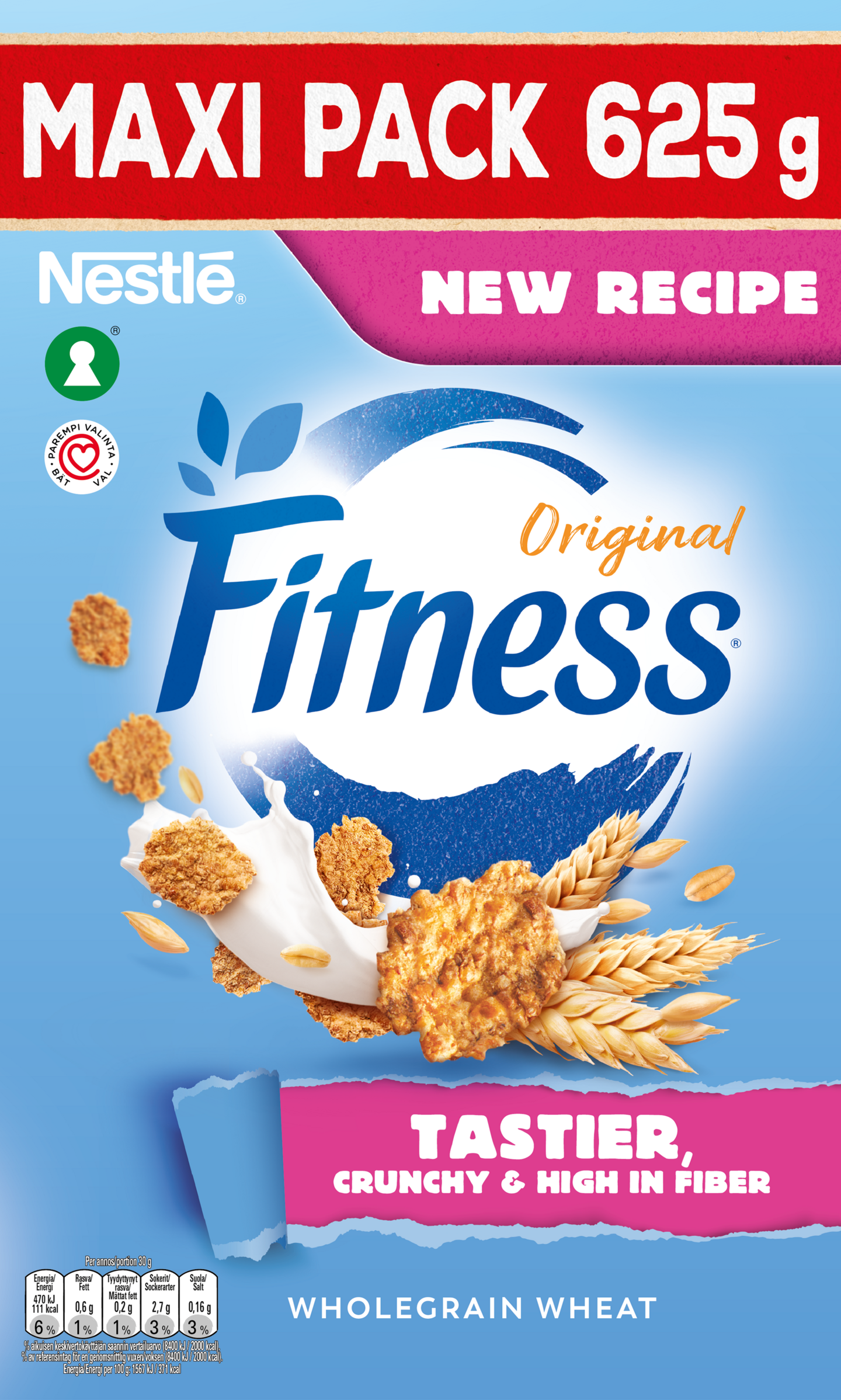 NESTLÉ FITNESS Original 625 g Fitness Original – rapea ja täysjyväinen aloitus päivään Rapeat täysjyvävehnähiutaleet (61 % täysjyvä) tarjoavat kuitua ja herkullista makua. Sopii maidon, kasvipohjaisen vaihtoehdon tai jogurtin kanssa – täydellinen tasapaino makua ja hyvyyttä.