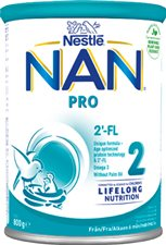"Nestlé NAN PRO 2 800g on jauhemainen maitopohjainen vieroitusvalmiste, jota voidaan antaa 6 kuukauden iästä alkaen osana tasapainoista ja monipuolista ruokavaliota. NAN PRO 2 vieroitusvalmiste sisältää viiden oligosakkaridin yhdistelmäämme ja proteiiniteknologian, jonka ansiosta tuotteen proteiinikoostumus vastaa vauvan iänmukaista tarvetta. Olemme sitoutuneet tukemaan lasten elinikäistä ravitsemusta hyödyntämällä tieteeseen perustuvaa tutkimusta sekä osaamistamme tuotteissamme. Ainutlaatuinen NAN PRO 2 vieroitusvalmiste yli 6 kuukauden ikäisille vauvoille on kehitetty 60 vuoden rintamaidon tutkimuksen innoittamana. Äidinmaito on imeväisen parasta ravintoa. • KEHITTYNYT PROTEIINITEKNOLOGIA, joka tarjoaa lapsellesi ainutlaatuisen proteiinin laadun ja -määrän. • 5 OLIGOSAKKARIDIA NAN PRO 2 sisältää kehittynyttä viiden oligosakkaridin (2'-FL/DFL, LNT, 3'-SL, 6'-SL) yhdistelmäämme. Oligosakkaridit ovat rakenteeltaan identtisiä äidinmaidossa luonnollisesti eniten esiintyvien oligosakkaridien kanssa. • SISÄLTÄÄ DHA:ta (dokosaheksaeenihappoa, yksi omega-3-rasvahapoista), joka tukee alle 12 kuukauden ikäisten imeväisten näön normaalia kehitystä. Edullinen vaikutus saavutetaan nauttimalla päivittäin 100mg DHA:ta.* • SISÄLTÄÄ D-VITAMIINIA & JODIA Tuote sisältää D‐vitamiinia, joka on välttämätön lasten luuston normaalille kasvulle ja kehitykselle. D‐vitamiini edistää myös immuunijärjestelmän normaalia toimintaa lapsilla. Jodi edistää lasten normaalia kasvua.* *Osana tasapainoista ja monipuolista ruokavaliota sekä terveitä elämäntapoja. Tuote on halal-sertifioitu. NAN PRO 2 on saatavilla jauhemaisena ja nestemäisenä. TÄRKEÄÄ! Äidinmaito on imeväisen parasta ravintoa, ja imetystä tulee jatkaa niin pitkään kuin mahdollista. NAN PRO 2 voidaan käyttää osana monipuolista ruokavaliota 6 kuukauden iästä alkaen. NAN PRO 2 ei ole korvike äidinmaidolle alle 6 kk:n ikäisille lapsille. 6 kk:n iästä alkaen suositellaan muun ruoan tarjoamista makuannoksina. Ole yhteydessä neuvolaan ennen vieroitusvalmisteen käyttöä. Huomioithan, että tuoteseloste saattaa muuttua – lue aina pakkauksen ainesosaluettelo ennen tarjoilua.