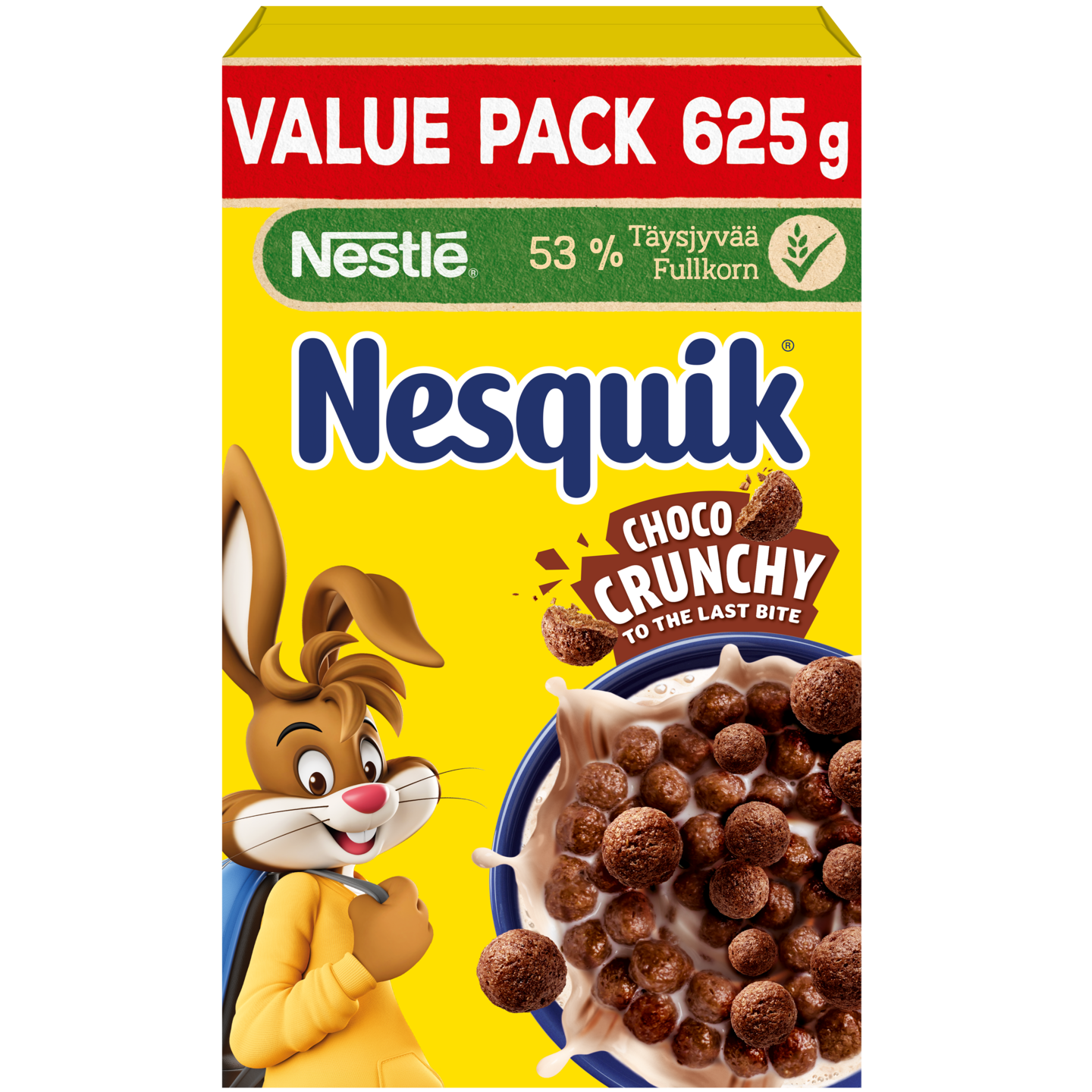 NESTLÉ NESQUIK Suklaamurot 625 g Nauti ikoninen suklaanmaku ja rapeus – NESQUIK tekee aamiaisesta hauskan ja herkullisen Aloita päiväsi NESTLÉ NESQUIK -muroilla ja koe klassinen suklaanmaku, joka tuo iloa koko perheelle. Jokainen rapea muro pysyy rapeana maidossa ja muuttaa sen vastustamattoman suklaiseksi. NESQUIK-murot on valmistettu täysjyvävehnästä, joka on tärkein ainesosa, ja ne tarjoavat kuitua sekä seitsemän vitamiinia ja rautaa, jotta saat ravitsevan ja energisen aloituksen päivälle. Ei keinotekoisia väri- tai makuaineita .Tarjoa maidon tai kasvipohjaisen vaihtoehdon kanssa ja lisää tuoreita hedelmiä täydelliseen aamiaiseen.