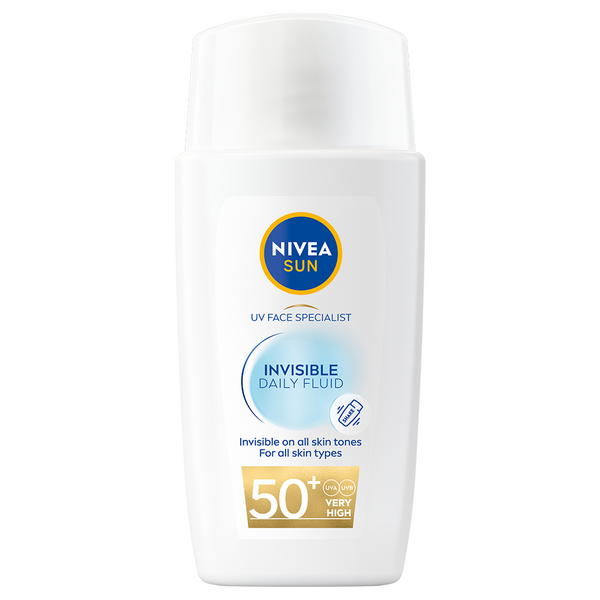 NIVEA SUN UV Face Invisible Daily Fluid SK50+ -aurinkosuojavoide kasvoille suojaa ihoa ulkoapäin UVA/UVB-säteiltä ja sinivalolta, jotka aiheuttavat ihovaurioita ja ihon ennenaikaista vanhenemista. Se suojaa ihoa myös sisältäpäin lakritsiuutteen ansiosta. Tämä voimakas luonnollinen antioksidantti aktivoi ihon omaa puolustusmekanismia suojellakseen ihosoluja ja toimii ilmansaasteiden vaikutuksia, kuten hapetusstressiä vastaan. Tämä erittäin kevyt voide sisältää niasiiniamidia ja se imeytyy välittömästi iholle jättämättä iholle tahmaista tai rasvaista tunnetta. Antaa iholle 8 tunnin mattapintaisen lookin, kosteuttaa ihoa ja tekee siitä kauniin hyvinvoivan näköisen. Sopii hyvin meikin alle, eikä tuki ihohuoksia. Sopii kaikille ihotyypeille. Iholle sopivuus on dermatologisesti hyväksytty ja voide on hellävarainen iholle. Ravista hyvin ennen käyttöä! Hyväksi iholle, hyväksi ympäristölle! Vesistöjä kunnioittava koostumus ei sisällä Octinoxate-, Oxybenzone- ja Octocrylene- UV-suodattimia, eikä mikromuovia. Pullo ja korkki on valmistettu 50 % kierrätysmuovista. Pahvipakkauksen materiaali on huolellisesti valittua ja FSC-hyväksyttyä.