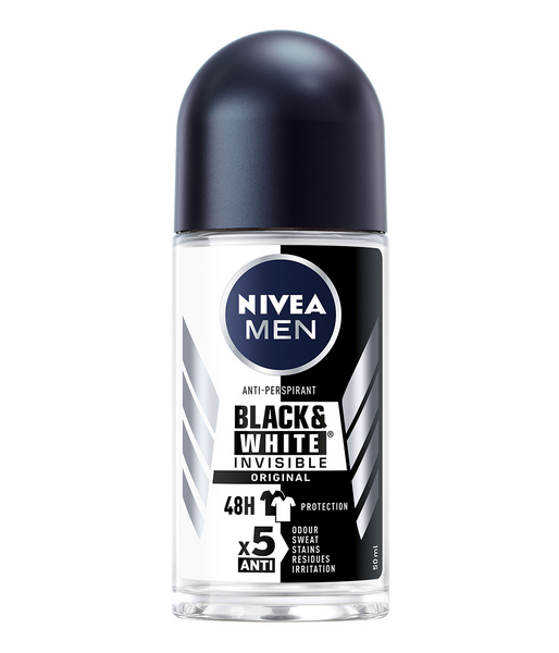 NIVEA MEN Black & White Invisible Original Deo Roll-on -antiperspirantti antaa 48 tunnin suojan hikoilua vastaan tahraamatta vaatteitasi. Musta pysyy mustana ja valkoinen valkoisena. Suojaa mustia vaatteita valkoisilta jäljiltä ja ehkäisee keltaisten tahrojen syntymistä valkoisiin vaatteisiin. Päivittäiseen käyttöön ja aktiiviseen elämään tarkoitettu hellävarainen, hoitava koostumus kuivuu iholle nopeasti ja sopii kaikille ihotyypeille. Hikoilet sitten kuumassa keittiössä, kuntosalilla tai työhaastattelussa - tämä deo ei petä! Miehekäs ja metsäinen tuoksu virkistää. Ei sisällä alkoholia ja on dermatologisesti testattu. -> Ei jätä valkoisia jälkiä mustiin vaatteisiin tai keltaisia tahroja valkoisiin vaatteisiin -> Hellävarainen 48 tunnin hoitava antiperspiranttisuoja -> Hellävarainen, hoitava koostumus -> Ei sisällä alkoholia -> Dermatologisesti testattu Mitä eroa on deodorantilla ja antiperspirantilla? Deodorantit taistelevat hajuja aiheuttavia bakteereja vastaan. Ne sisältävät deodoroivia aktiiveja, jotka estävät bakteereja kasvamasta tai jopa vähentävät bakteerien määrää kainalossa. Antiperspirantit sisältävät antiperspiranttisia aktiiveja – yleensä alumiinisuolaa, joka vähentää hikirauhasten hieneritystä muodostaen tilapäisiä ”geelitulppia” hikirauhasten pinnalle. Nämä tulpat poistuvat ajan saatossa mekaanisesti ja luontaisen ihon uusiutumisen yhteydessä. Antiperspiranteilla on myös deodoroiva vaikutus, sillä ne estävät bakteerien kasvua alemmalla pH-arvollaan ja vähentävät kainalon kosteutta.