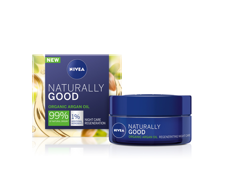 NIVEA Naturally Good Regenerating Night Cream -yövoide on hemmotteleviä luonnon öljyjä sisältävä vegaaninen kasvovoide, joka kosteuttaa sekä uudistaa ihoa yön aikana, jolloin iho on kaikkein vastaanottavaisimmillaan. Sisältää 99% luonnonmukaisia ainesosia*! Sopii kaikille ihotyypeille - myös herkälle iholle. Vähentää juonteita ja ryppyjä näkyvästi kahdessa viikossa! Aamulla iho näyttää ja tuntuu levänneeltä ja raikkaalta. Luonnonmukaisen arganöljyn, manteliöljyn ja jojobaöljyn ihoa hellivien ainesosien yhdistelmä jättää ihon ihanan pehmeäksi. Arganöljy tehokosteuttaa ja estää ryppyjä - koska se on hyvin ravitseva ja siinä on auringolta suojaavia ominaisuuksia, kuivan ihon ja auringon aiheuttamat vauriot vähenevät. Jojobaöljyn hyötyihin kuuluvat sen kosteuttavat ominaisuudet, jotka ovat hyvin samankaltaisia ihon tuottamien luonnollisten rasvojen kanssa. Jojobaöljy sisältää E-vitamiinia, tunnettua antioksidanttia, joka ehkäisee vapaiden radikaalien, kuten saasteiden, aiheuttamia ihovaurioita. Laadukkaiden raaka-aineiden yhdistelmä stimuloi ihon oman kollageenin tuotantoa** ja tekee ihosta näkyvästi kiinteämmän ja tasaisemman. Levitä iltaisin puhdistetuille kasvoille ja kaulalle, decoltee -aluetta unohtamatta. Vältä herkkää silmänympärysaluetta. Dermatologisesti testattu.**testattu in vitro *Luonnosta peräisin olevat aineet säilyttävät yli 50% niiden molekyylirakenteesta prosessoinnin jälkeen (luonnollinen tila). Parhaan lopputuloksen saat yhdistämällä samanaikaisesti ihonhoitoosi myös muita Naturally Good - tuotteita, joiden ainesosat tukevat ja voimistavat toistensa vaikutuksia. Ajatuksena on, että mihin päivävoide iltapuhdistuksella lopettaa työnsä, jatkaa yövoide siitä työtä aamupuhdistukseen asti. Naturally Good -tuotesarjallamme tavoitteenamme on kertoa sinulle tarkalleen, mitä laitat ihollesi ja auttaa sinua löytämään tasapaino arjessasi yksinkertaisella ja luonnollisella ihonhoitorutiinilla. Muista, että kasvoille tarkoitettu kosteusvoide hoitaa ihoasi paremmin kuin yleisvoide. Miksi NATURALLY GOOD on luonnollinen valinta? 1. Vegaaninen koostumus -> Tuotteet eivät sisällä eläinperäisiä ainesosia 2. Luonnollisuus -> Kehitetty käyttäen niin paljon luonnollista alkuperää olevia ainesosia kuin mahdollista 3. Kestävä kehitys -> PET-purkkimme sekä PP:stä valmistetut pullomme ovat kierrätettäviä. Tämä edistää tavoitettamme käyttää vain kierrätettäviä, uudelleenkäytettäviä tai kompostoitavia pakkauksia vuoteen 2025 mennessä.