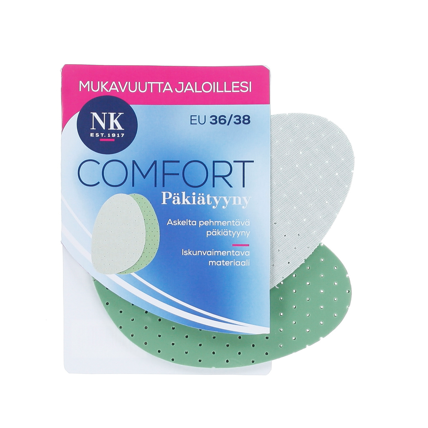 Comfort Päkiätyynyllä lisäät mukavuutta jaloillesi ja saat kengät istumaan paremmin jalkaan. Pehmeä lateksimateriaali antaa hyvän iskunvaimennuksen päkiän alueelle ja vähentää jalkojen kipeytymistä esim. korkokengissä.