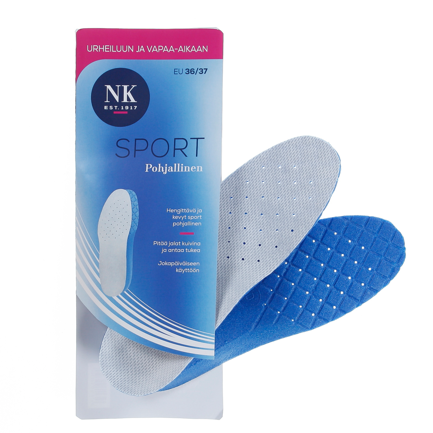 Sport pohjallinen on erittäin kevyt ja tukea antava pohjallinen, jossa on hyvin kosteutta imevä pintamateriaali, sekä iskunvaimentava pohjamateriaali. Pohjallinen on hyvin hengittävä ja sopii käytettäväksi kaiken tyylisiin vapaa-ajan kenkiin. Koot: 36/37 – 46/47