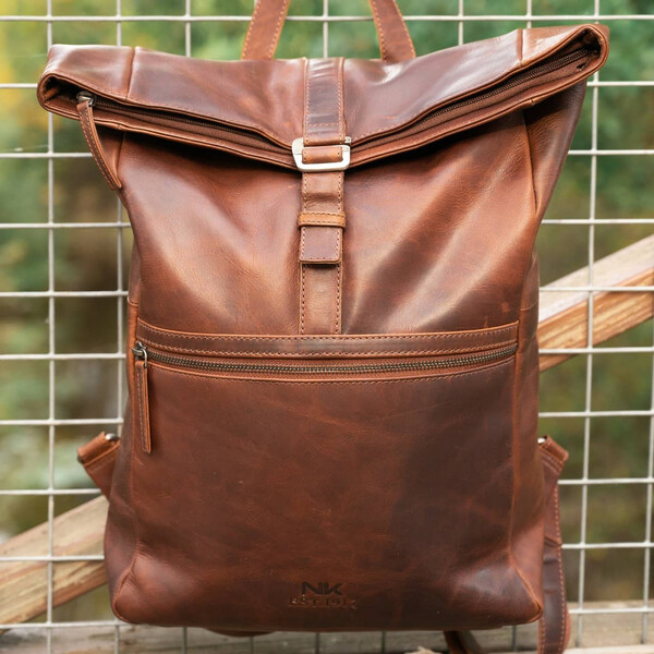 Kestävästä nahasta valmistettu tyylikäs reppu, johon sopii jo hiukan enemmänkin tavaraa. Repun koko on 35 cm x 50 cm x 12 cm. Etupinnassa on pieni vetoketjutasku pientä tavaraa kuten hiirtä ym varten, sisäpuolella iso tasku ja toinen tasku vetoketjulla. Koko matkalta pehmustetut viilekkeet antavat mukavuutta käyttöön. Valmistusmateriaalina laadukas rasvanahka.