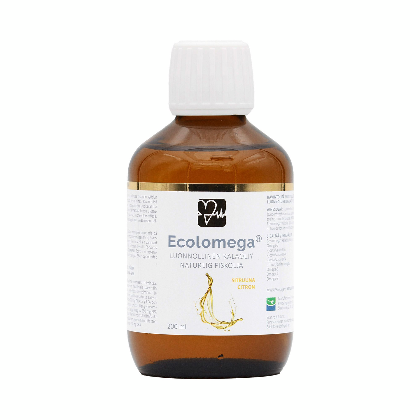 Tanskalaiset Ecolomega®-kalaöljytuotteet täyttävät kaikki huippulaatuisen kalaöljyn kriteerit. Ne ovat täyden spektrin kalaöljyä, eli sisältävät tuoreen kalan koko rasvahappoprofiilin – öljyä ei ole käsitelty kemiallisesti tai tiivistetty keinotekoisesti. Siinä on runsaasti omega-3 rasvahappoja (ALA, EPA, DHA ja DPA) sekä muita kalan luonnollisen rasvahappoprofiilin “omegoita”, eli omegat 6, 7, ja 9.