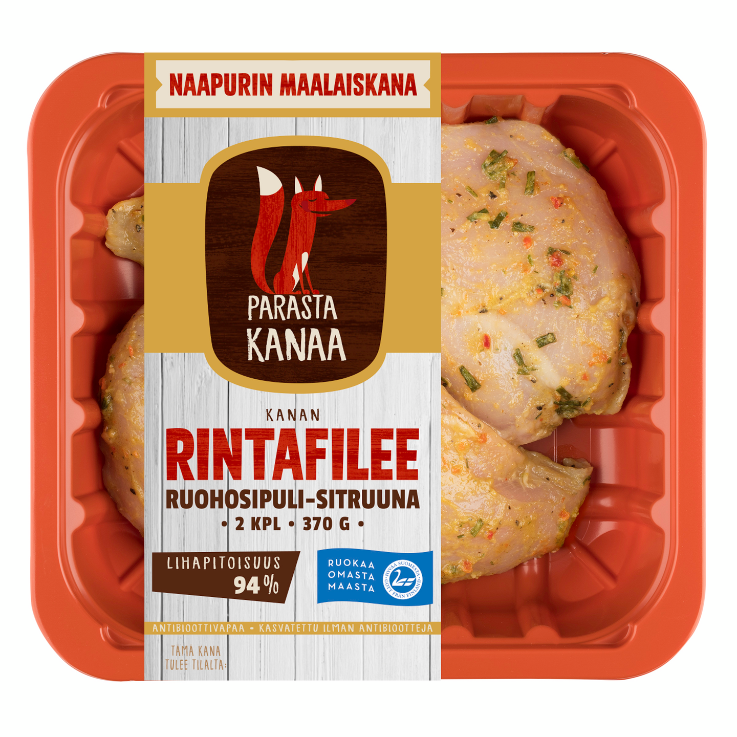 Naapurin Maalaiskanan mehevät Ruohosipuli-Sitruuna Rintafileet valmistetaan ilman lisäaineita ja lisättyä vettä. Raikkaasti sitruunalla ja sipulilla maustetut rintafileet sopivat niin salaatteihin kuin muihin ruokalajeihin. Maista ja tykästy!
