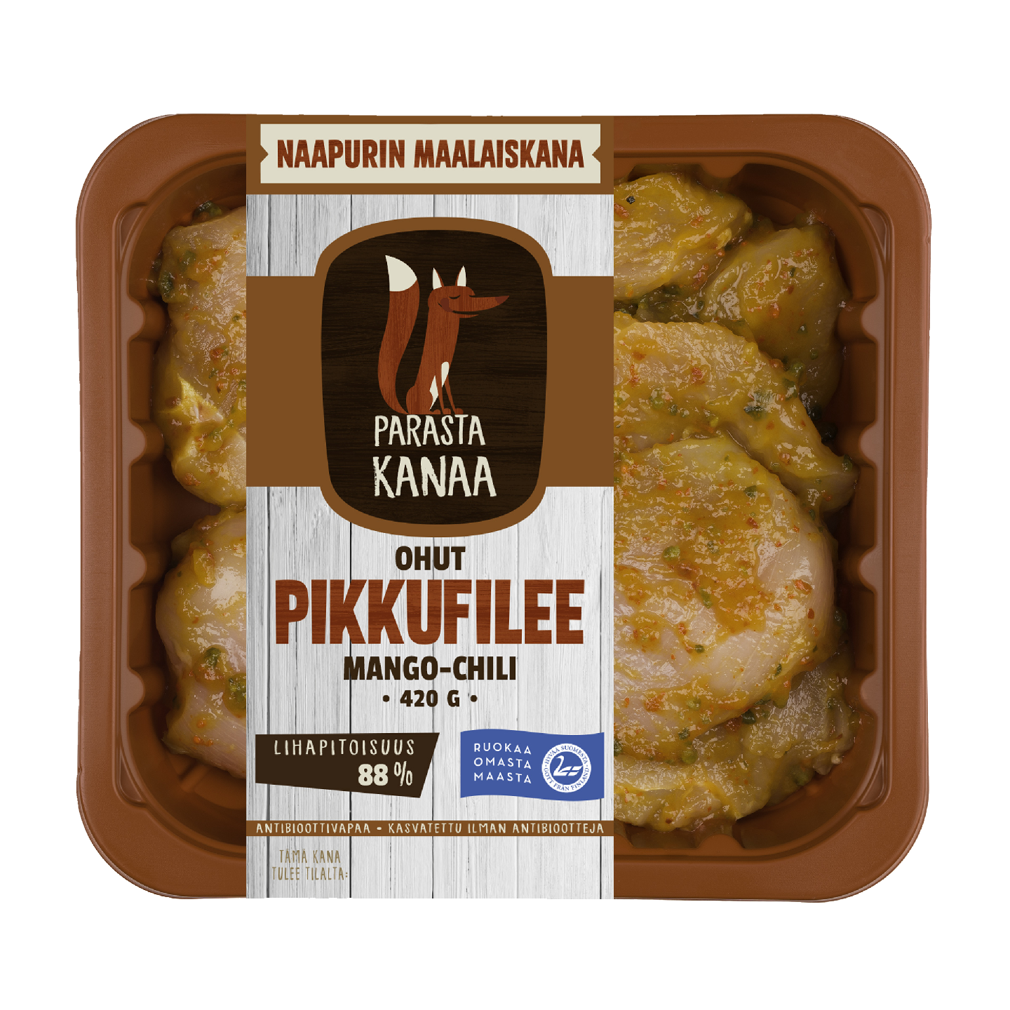 Naapurin Maalaiskanan Mango-Chili Ohuet Pikkufileet valmistetaan ilman lisäaineita ja lisättyä vettä. Mangososeella ja chilimixillä maustetut pikkufileet ovat ohuita ja kauniin pisaran muotoisia. Maista ja tykästy!