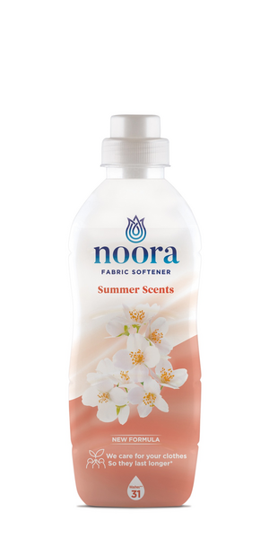 Noora Summer Scents on tekstiileille hellävarainen huuhteluaine, joka auttaa pidentämään vaatteiden käyttöikää. Huuhteluaineen käyttö ehkäisee nukkaantumista ja kulumista, sekä helpottaa silittämistä. Kesäisestä tuoksusta voi löytää mm. trooppisten hedelmien aromeja.