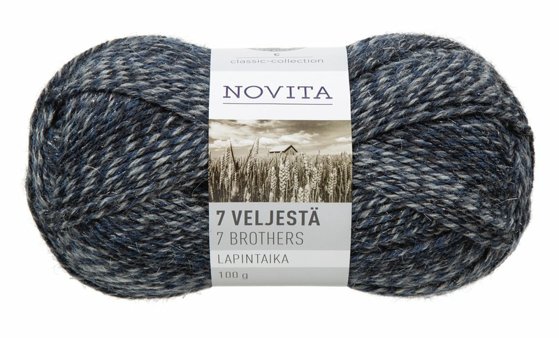 Novita 7 Veljestä Lapintaika -langassa on tuttuun klassikkoon lisätty ripaus pohjoista magiaa. Pehmeästi liukuvärjättyjen värisävyjen mukana on metallinhohdetta. Erityinen väriraportti on osa langan luonnetta, minkä vuoksi jokaisesta sukasta ja asusteesta tulee uniikki. Lapintaika sisältää 75 % villaa, 24 % polyamidia ja 1 % polyesteriä. 7 Veljestä Lapintaika -lankaa voi käyttää sellaisissa kansainvälisissä neuleohjeissa, joissa suositellaan Aran-vahvuisia lankoja ja puikkoja 5. Naisten M-kokoiseen neuleeseen tarvitaan noin 600 grammaa lankaa ja 38-kokoiset perussukat valmistuvat yhdestä kerästä. Tuotteet voidaan konepestä 40 asteessa. Puikkosuositus 4, sukkiin puikot 3.5. 100 gramman kerässä on 200 metriä lankaa. Avainlipputuote.
