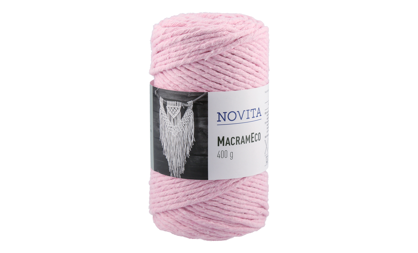 Novita MacramEco on paksu makrameelanka, jonka avulla voit tehdä monipuolisia käsityöprojekteja. Narumainen tuote soveltuu hyvin makrameetöihin, virkkaamiseen ja neulontaan. 100 % kierrätetystä materiaalista valmistettu lanka on vastuullinen valinta kodin sisustustuotteisiin, koristeisiin ja asusteisiin. Tekstiilituotannon ylijäämämateriaalista valmistetun langan värit ovat peräisin alkuperäisestä raaka-aineesta, jonka takia langan sävyissäkin on kiinnostavaa monivivahteikkuutta. Tuotteet voidaan konepestä 30 asteessa ja suositellaan pesupussin käyttöä. Tuotteet muotoillaan kosteana. Puikko- ja virkkuukoukkusuositus 8–10 mm. 400 gramman kartio sisältää 105 metriä lankaa.