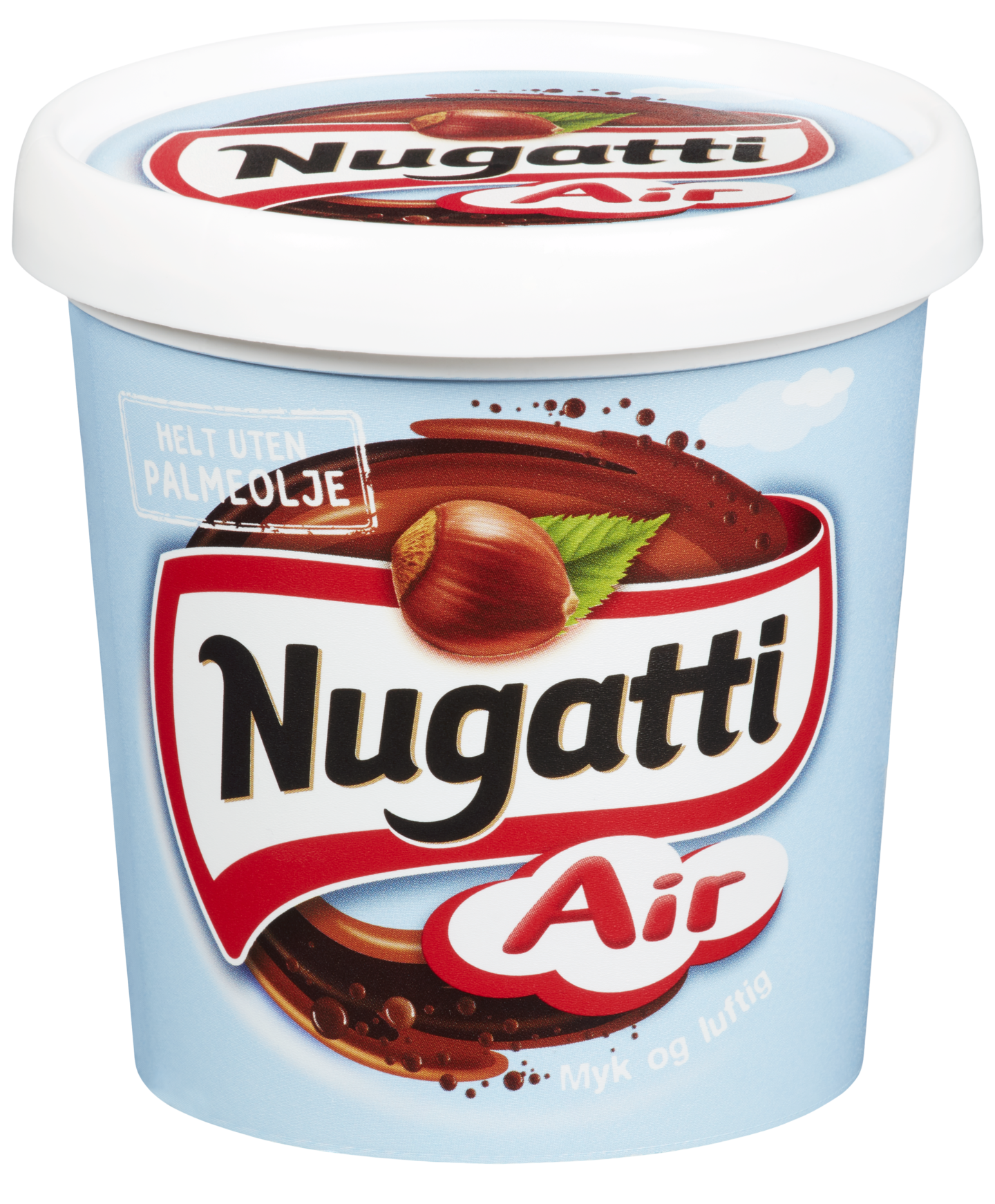 Nugatti Air on kuohkea hasselpähkinä-kaakaolevite. Nugatti Air on täynnä pieniä ilmakuplia, tämä tekee siitä pehmeää, ilmavaa ja hel posti levittyvää. Tuote sopii loistavasti leivonnaisten ja kakkujen kuorruttamiseen.