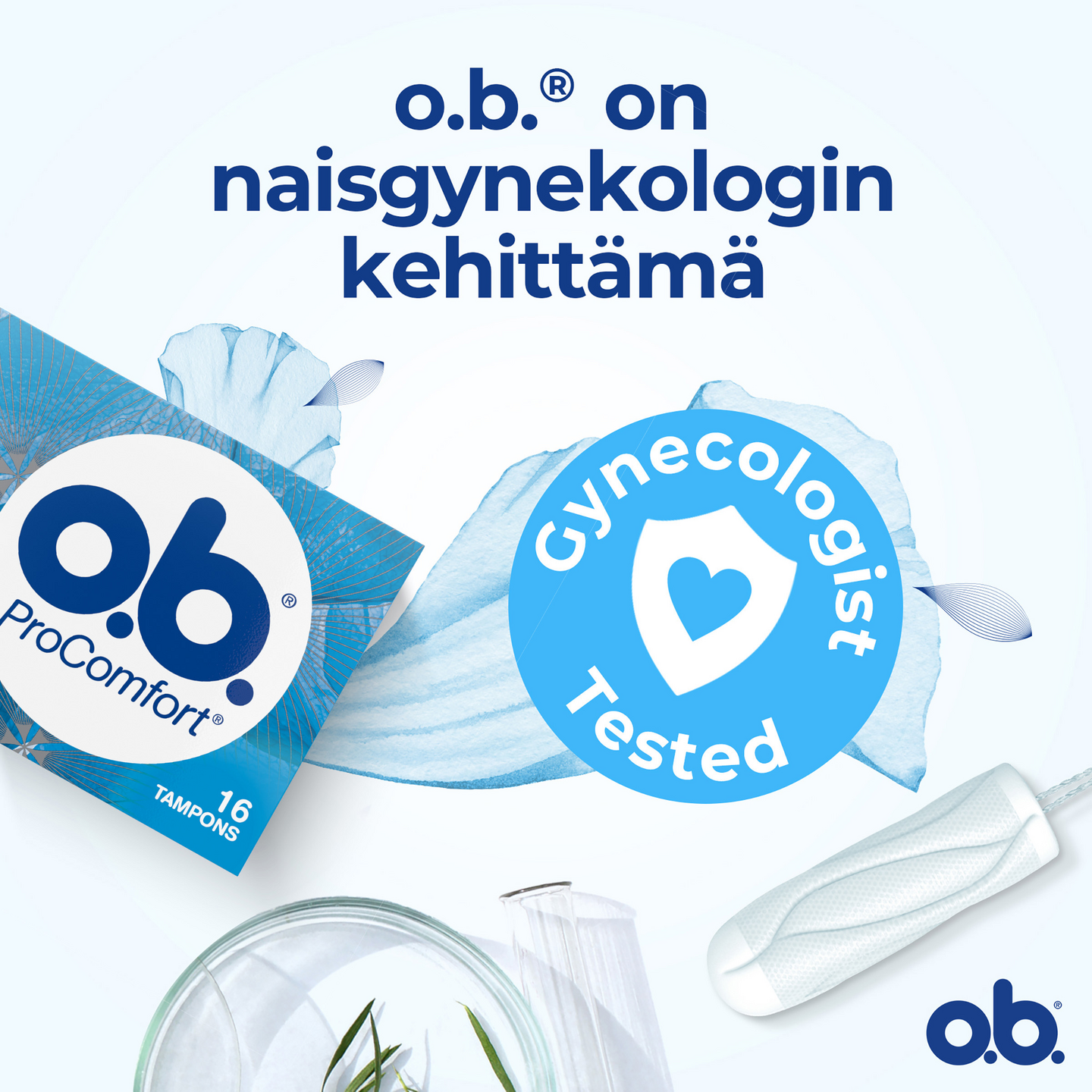 Sileän SilkTouch®-pintansa ja ainutlaatuisten lomittaisten uriensa ansiosta o.b.® ProComfort® Normal -tamponi on helppo asettaa paikalleen, ja se takaa luotettavan suojan. Mukava ja helppokäyttöinen myös päivinä, jolloin vuoto on vähäistä. Jopa 100 % suoja vuotoja vastaan ja luotettava suoja 4-8 tunnin ajan. o.b.® ProComfort® on o.b.®-valikoiman mukavin tamponi, joka tarjoaa luotettavaa suojaa, jotta voit keskittyä tekemään sitä, mitä haluat. Sopii parhaiten normaaliin tai runsaaseen vuotoon.