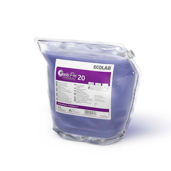 Oasis Pro 20 Premium - DESINFIOIVA PUHDISTUSAINETIIVISTE Oasis Pro Premium sarja on ammattikäyttöön tarkoitettu puhdistusainejärjestelmä, jossa korkealaatuiset tiivistetuotteet takaavat erinomaisen puhtaustuloksen. Oasis Pro 20 Premium desinfioiva yleispuhdistusaine, joka tuhoaa bakteereja ja sieniä ruoanvalmistusvälineistä ja -pinnoilta. Oasis Pro 20 Premium on bakterisidinen EN 1276 ja EN 13697 mukaan 100ml/10L (1%) / 5 min.; fungisidinen EN 1650 ja EN 13697 mukaan 100ml/10L (1%) / 15 minutes. Puhdas – Oasis Pro 20 Premium puhdistaa ja desinfioi samanaikaisesti. Turvallinen – Laajatehoiset desinfektio-ominaisuudet. Tehokas – Tarkka annostelu takaa erinomaisen puhdistustuloksen ja alhaiset käyttökustannukset.