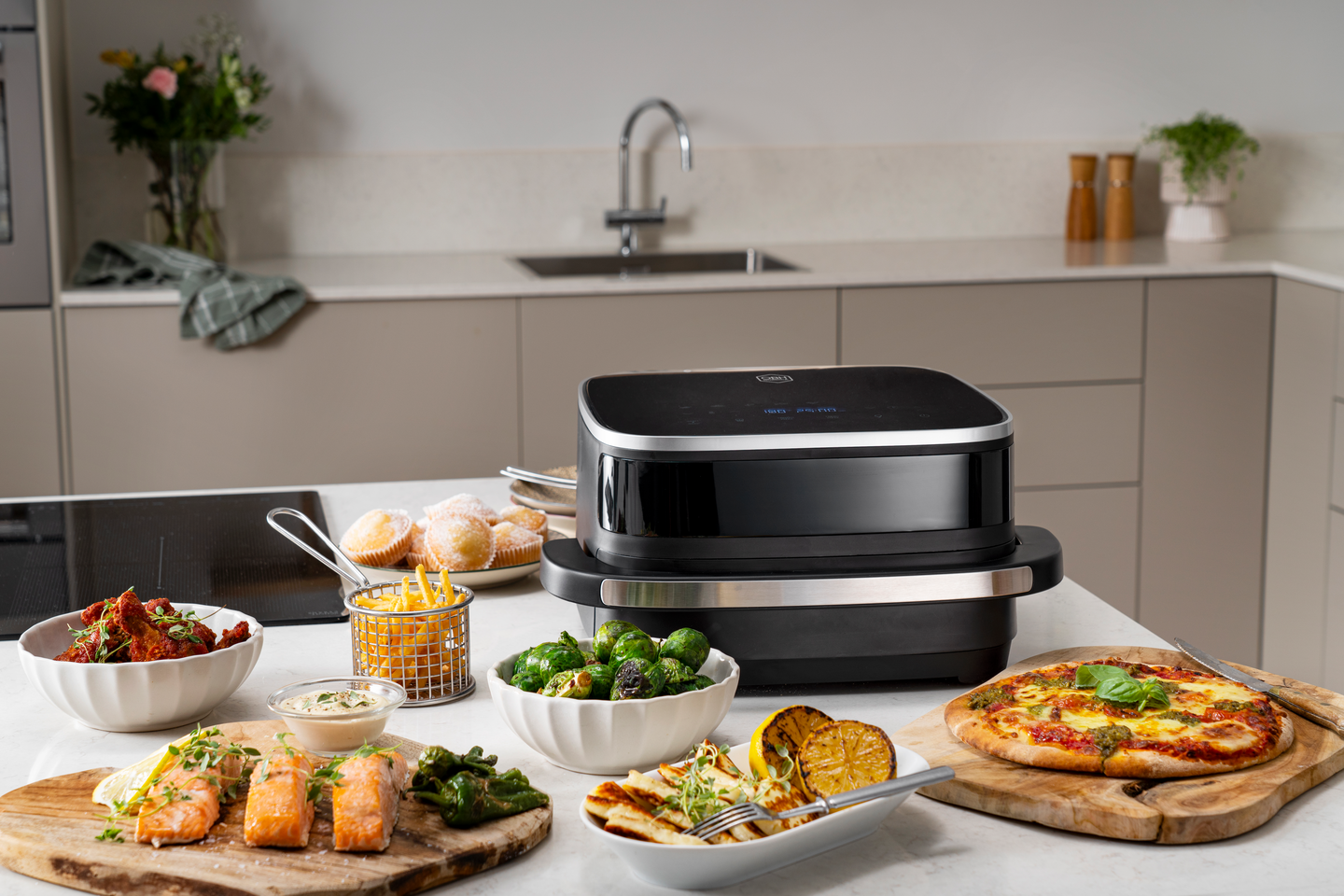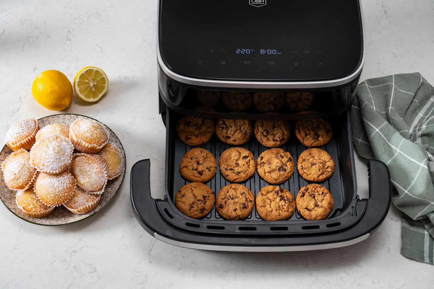 Easy Fry XL Surface hyödyntää Extra Crisp tekniikkaa, joka yhdistää ylälämmön, alalämmön ja 360 astetta kiertävän kuuman ilman, minkä ansiosta saat rapeat ja kullanruskeat tulokset nopeasti. Laitteessa on ikkuna ja sisävalo, joten voit tarkkailla ruokaa avaamatta kypsennysastiaa, joten lämpö ei pääse karkaamaan.
