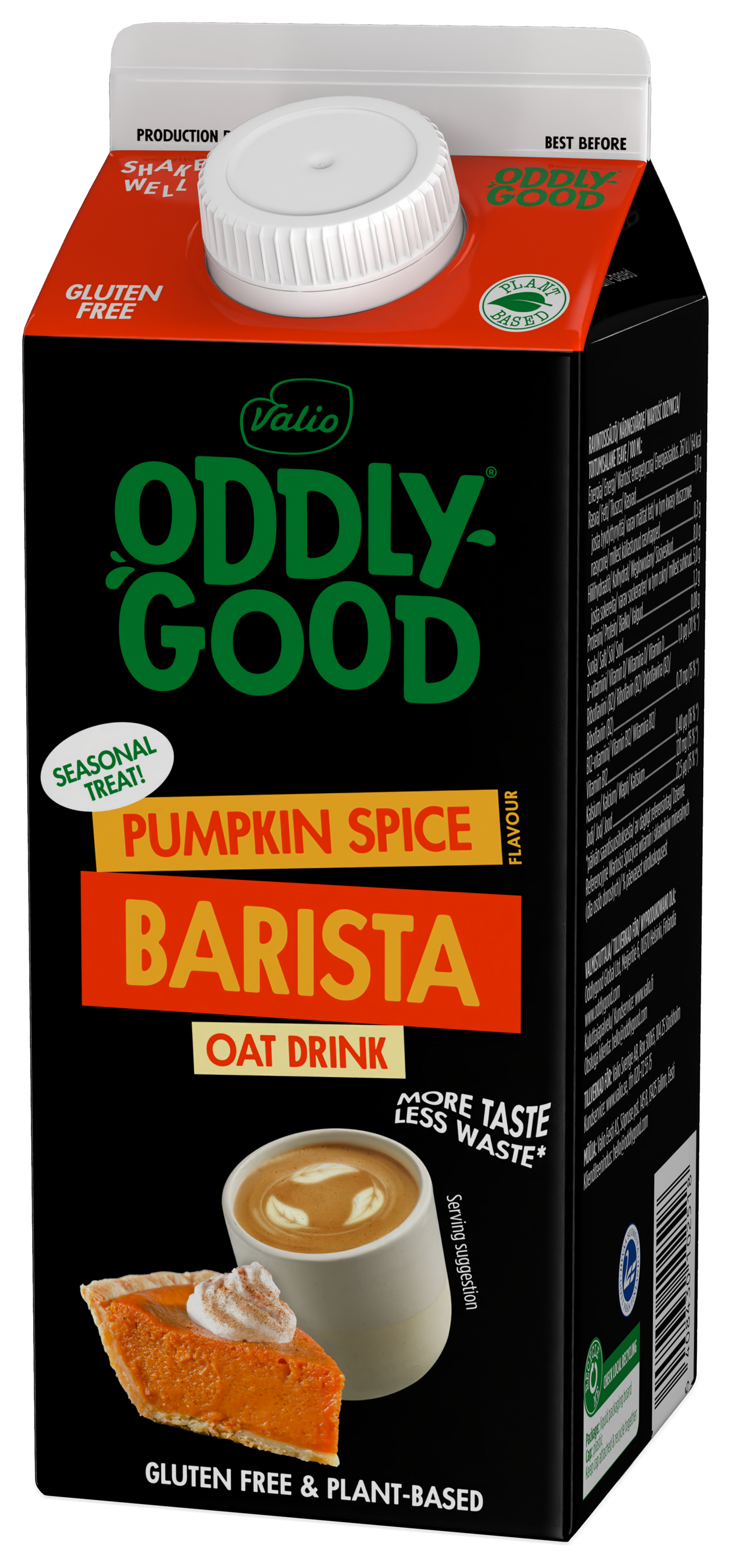 Syksyisen mausteinen sesonkimaku Oddlygood® Barista pumpkin spice tekee kahvihetkestäsi hetkessä herkumman ja tuo kahviloista tutun pumpkin spice latten kotiisi! Lisää maustettua kaurajuomaa kahviin joko sellaisenaan, kuumennettuna tai vaahdotettuna. Herkullisen makunsa lisäksi tuote vaahtoutuu kauniisti ja sekoittuu tasaisesti kaikkiin kahvityyppeihin. Kokeile myös leivontaan tai vaikkapa tuorepuuroon. Valmistetaan Suomessa kotimaisesta gluteenittomasta kaurasta. Sopii vegaaniseen ruokavalioon. Ravista ennen käyttöä.