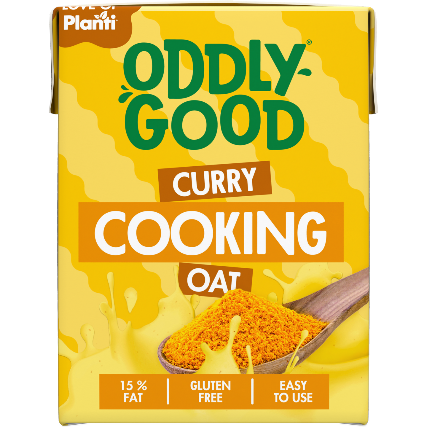 Oddlygood® Cooking Oat curry tuo kauran pehmeyttä kokkailuun - nyt gluteenittomana! Tämä monen kokkaajan luottotuote on ollut aiemmin saatavilla nimellä Oddlygood® Planti Cooking Oat curry. Nyt tuote on siirtynyt Oddlygoodin alle - ja on samalla muuttunut gluteenittomaksi. Käytä kuin maustettua ruokakermaa, kun haluat saada curryn herkullista mausteisuutta ruokaan. Cooking Oat tuo täyteläistä makua keittoihin ja pastakastikkeisiin ja kestää hyvin myös hauduttamista. Sillä teet myös mehevät piirakat. Kokkailemisiin!