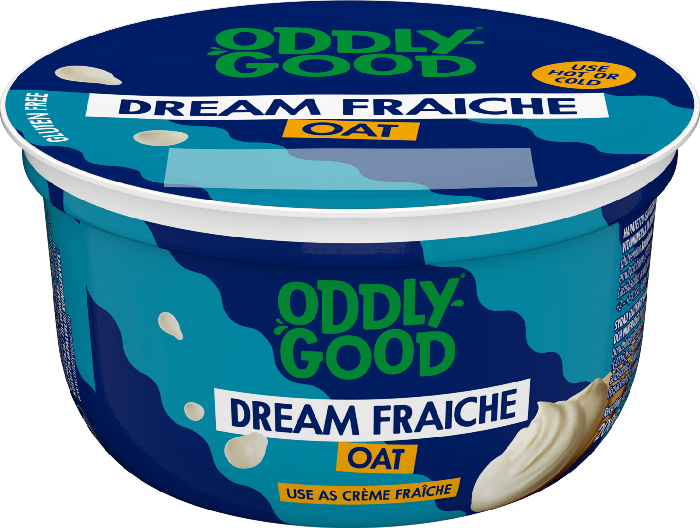 Oddlygood® Dream Fraiche on ihanan täyteläinen, kasvipohjainen vaihtoehto ranskankermalle kylmään ja lämpimään kokkailuun sekä leivontaan. Se tuo täyteläisyyttä keittoihin ja kastikkeisiin sekä mehevyyttä leivonnaisiin. Dream Fraiche on maultaan lempeä ja miedosti hapan, mikä toimii kuin unelma dipeissä ja kylmissä kastikkeissa. 100 % kasviperäinen tuote valmistetaan ilman palmuöljyä tai soijaa. Sopii vegaaniseen ruokavalioon.