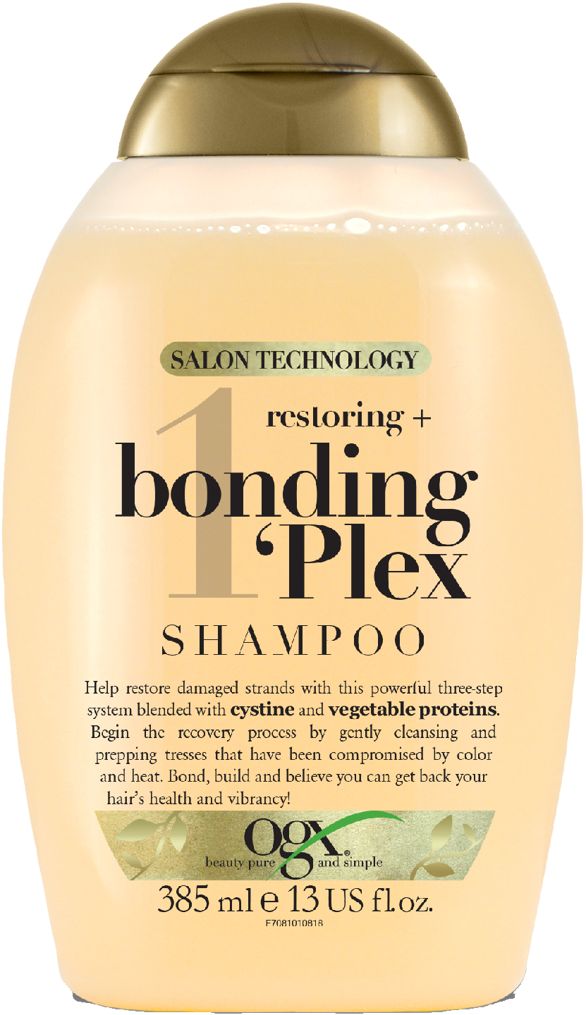 OGX Bonding Plex -sarjan tehokas kolmivaiheinen hoitomenetelmä auttaa palauttamaan vaurioituneet hiukset. Pehmentää, vahvistaa ja silottaa hiukset. Sisältää kystiiniä joka hoitaa ja lisää kiiltoa sekä kasviproteiineja jotka silottavat hiussuomuja ja suojaa vaurioilta.