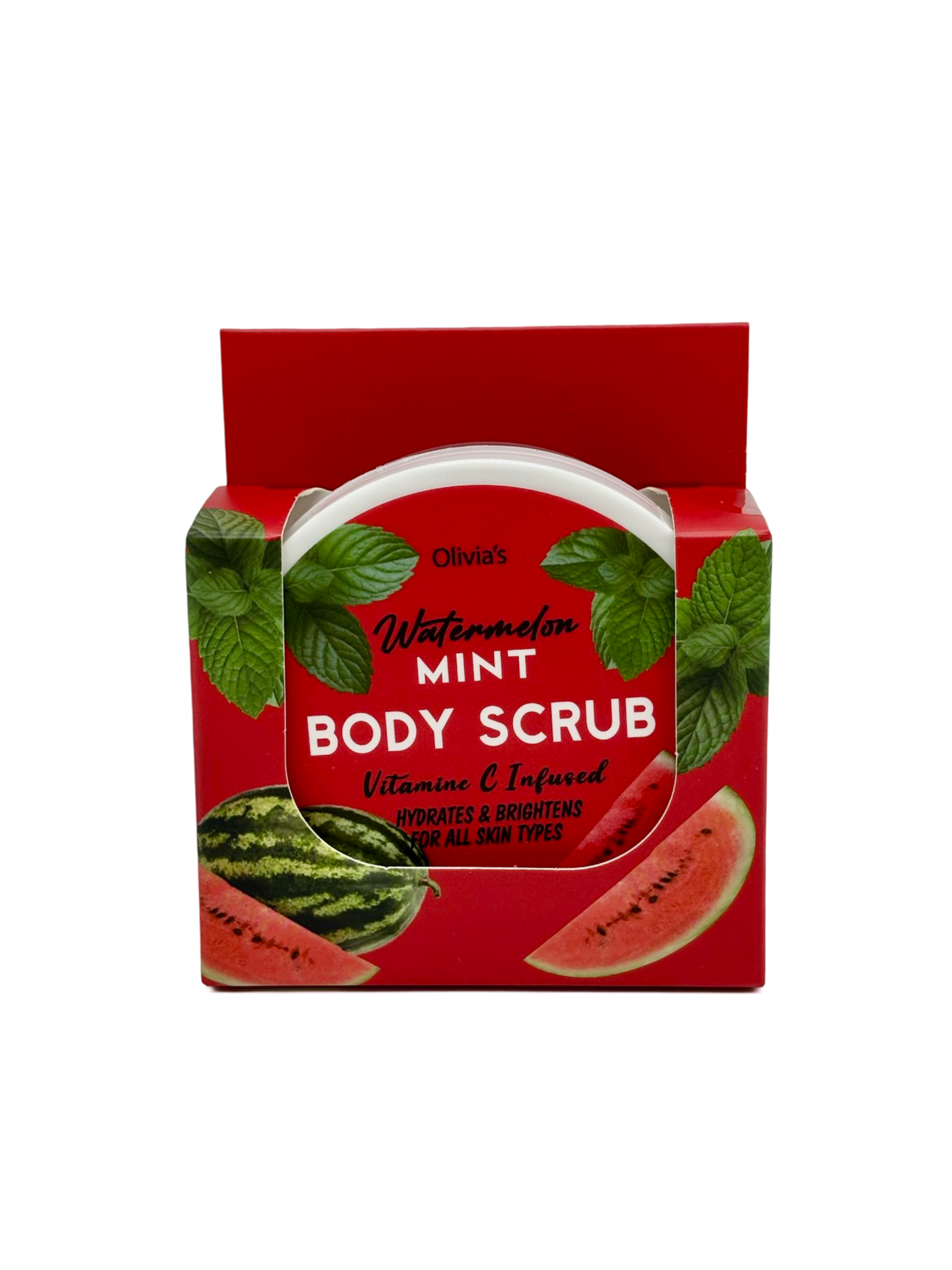 Olivia´s vartalonkuorinta, jolla saat ihostasi hetkessä ihanan pehmeän ja kimmoisan. Tuoksuna ihanan mehukas vesimeloni & minttu.