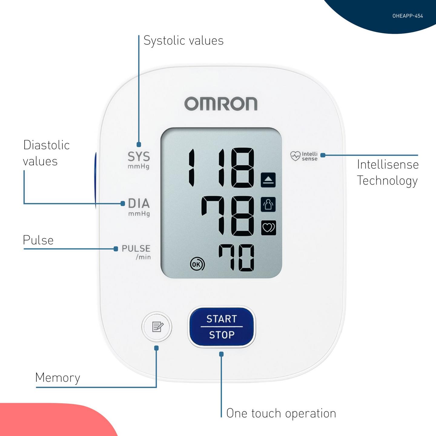 Laite käyttää Omron Intelli Sense -teknologiaa, jonka ansiosta mittari pumppaa mansettiin ilmaa vain sen verran, kun tarvitaan, joten mittaus on aina nopea, luotettava ja kivuton. Mittari ilmoittaa symbolin avulla, jos mittauksen aikana on ollut epäsäännöllistä sykettä. OMRON verenpainemittarit ovat kliinisesti validoituja eli lääketieteen ammattilaisten testaamia ja suosittelemia.