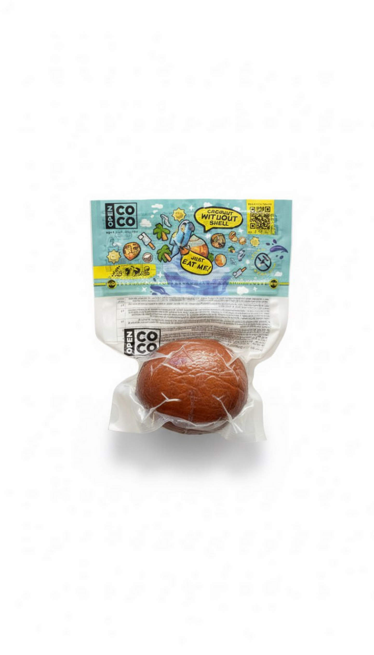 Kuorittu tuore kookospähkinä, joka sisältää herkullista kookoslihaa ja raikasta kookosmehua. Pakattu kätevään, uudelleensuljettavaan ja uudelleenkäytettävään zip-lock-pussiin. Tuore kookospähkinä on energiatiheä ja ravinteikas valinta – se sisältää runsaasti kuitua sekä tärkeitä kivennäisaineita.