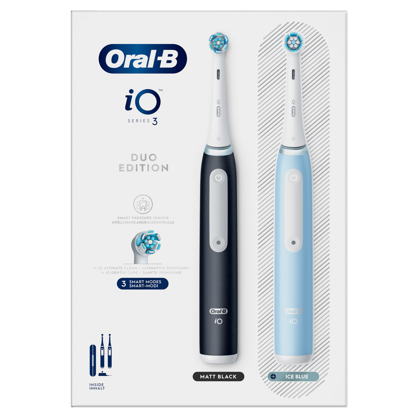 • Sisältö: 2 iO3-sähköhammasharjaa, 2 vaihtoharjaa, 1 laturi, 1 matkakotelo
