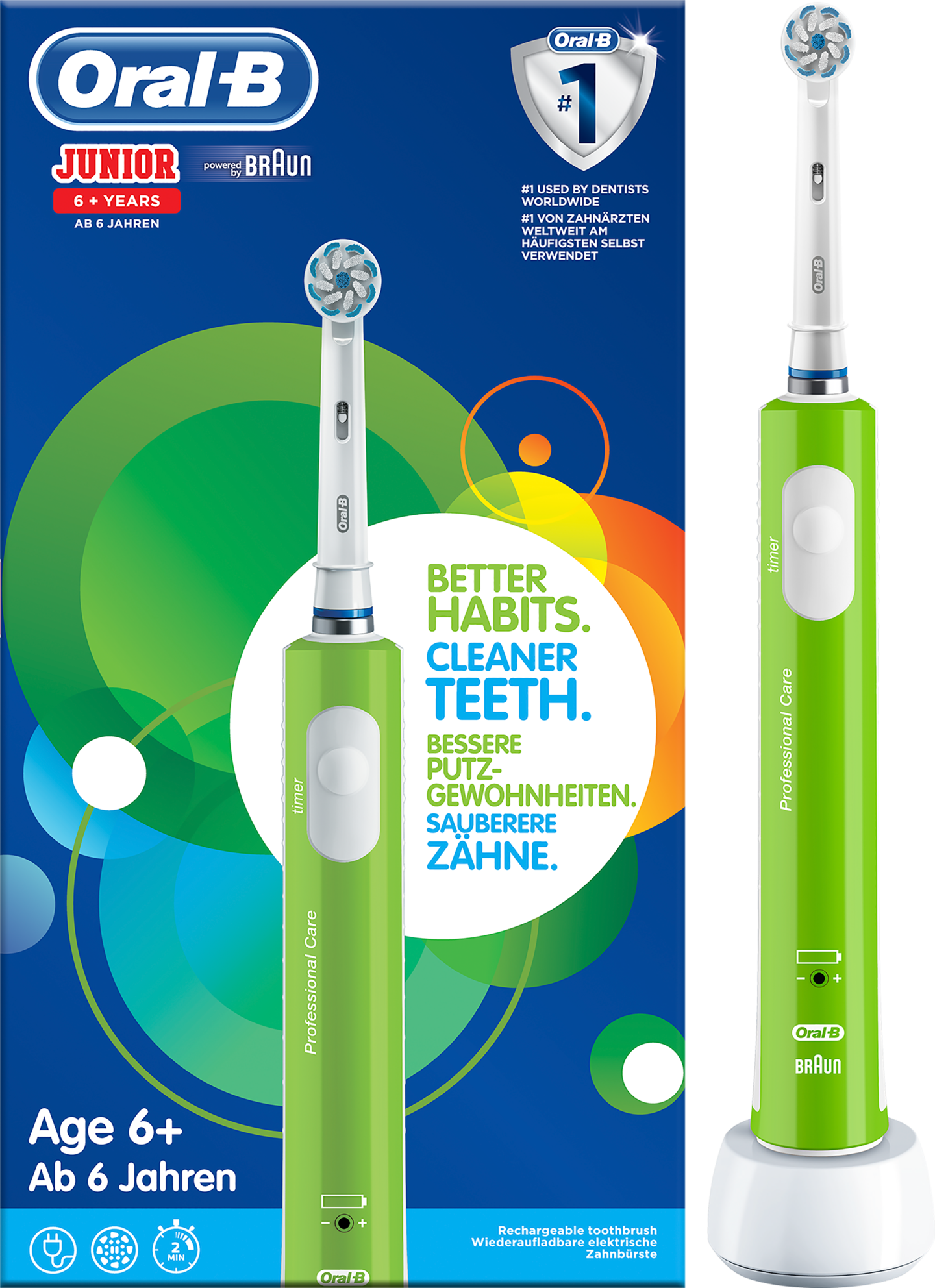 Värikäs Oral-B Junior 6+ -sähköhammasharja voi kannustaa lapsia luomaan terveet suunhoitotavat. Tämä lasten ladattava sähköhammasharja poistaa enemmän plakkia kuin käsikäyttöinen hammasharja ja sen erittäin pehmeät harjakset on kliinisesti todettu hellävaraisiksi lasten hampaille ja ikenille. Sisäänrakennettu ajastin opettaa lasta harjaamaan hammaslääkärien suosittelemat kaksi minuuttia. Oral-B Junior 6+ -sähköhammasharjan mukana tulee harjausopas, joka opastaa lapsia hampaiden pesussa. - 3D-tekniikka: Junior D16 -sähköhammasharjan 3D harjaustekniikka poistaa plakkia tehokkaammin kuin tavallinen hammasharja. 28 800 pyörivää ja sykkivää liikettä minuutissa auttavat pitämään hampaat puhtaina. - Paineen hallinta: Sähköhammasharjan paineenhallintateknologia suojelee ikeniä hidastamalla harjausnopeutta. - Ladattava akku: Ladattava akku antaa 30 minuuttia käyttöaikaa täydellä latauksella. - Ajastin: Kätevä ajastin auttaa lasta pesemään hampaita suositellut 2 minuuttia. Ajastin opastaa 30 sekunnin välein vaihtamaan harjattavaa aluetta. - Yli 6v. lapsille Myyntipakkaus sisältää: - Kädensija - Laturi - 1 x harjauspää - Käyttöohje. Takuu 24 kk.