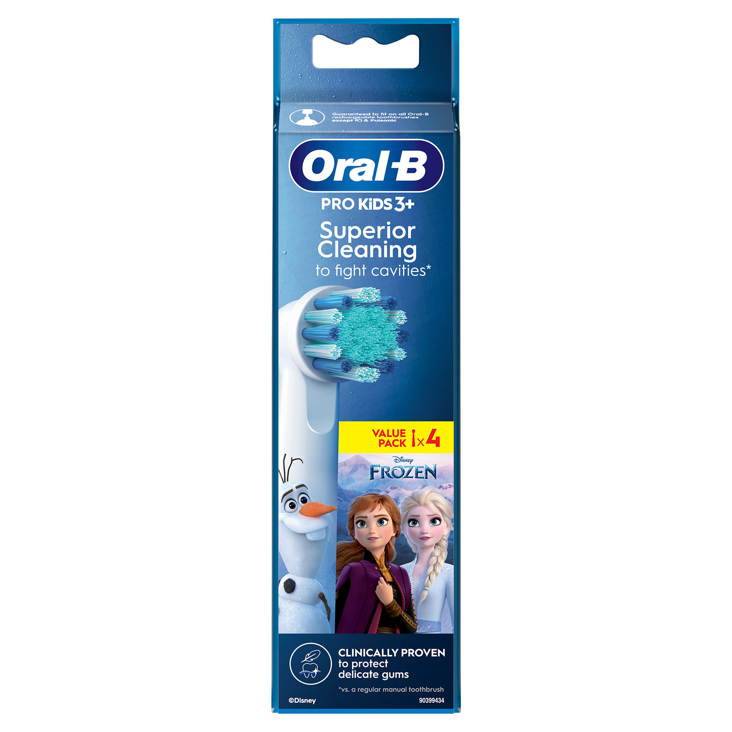 Yli 3-vuotiaille lapsille tarkoitettu Oral-B Kids 3+ -vaihtoharja ilahduttaa Disney Frozen -teemalla samalla kun se puhdistaa hellävaraisen tehokkaasti hammaslääkärien suosittelemien Oral-B-hammasharjojen tapaan. Erittäin pehmeät harjakset ja pieni, pyöreä harjaspää on suunniteltu erityisesti lasten hampaille. Vaihtoharja on yhteensopiva kaikkien Oral-B Kids -sähköhammasharjojen kanssa.