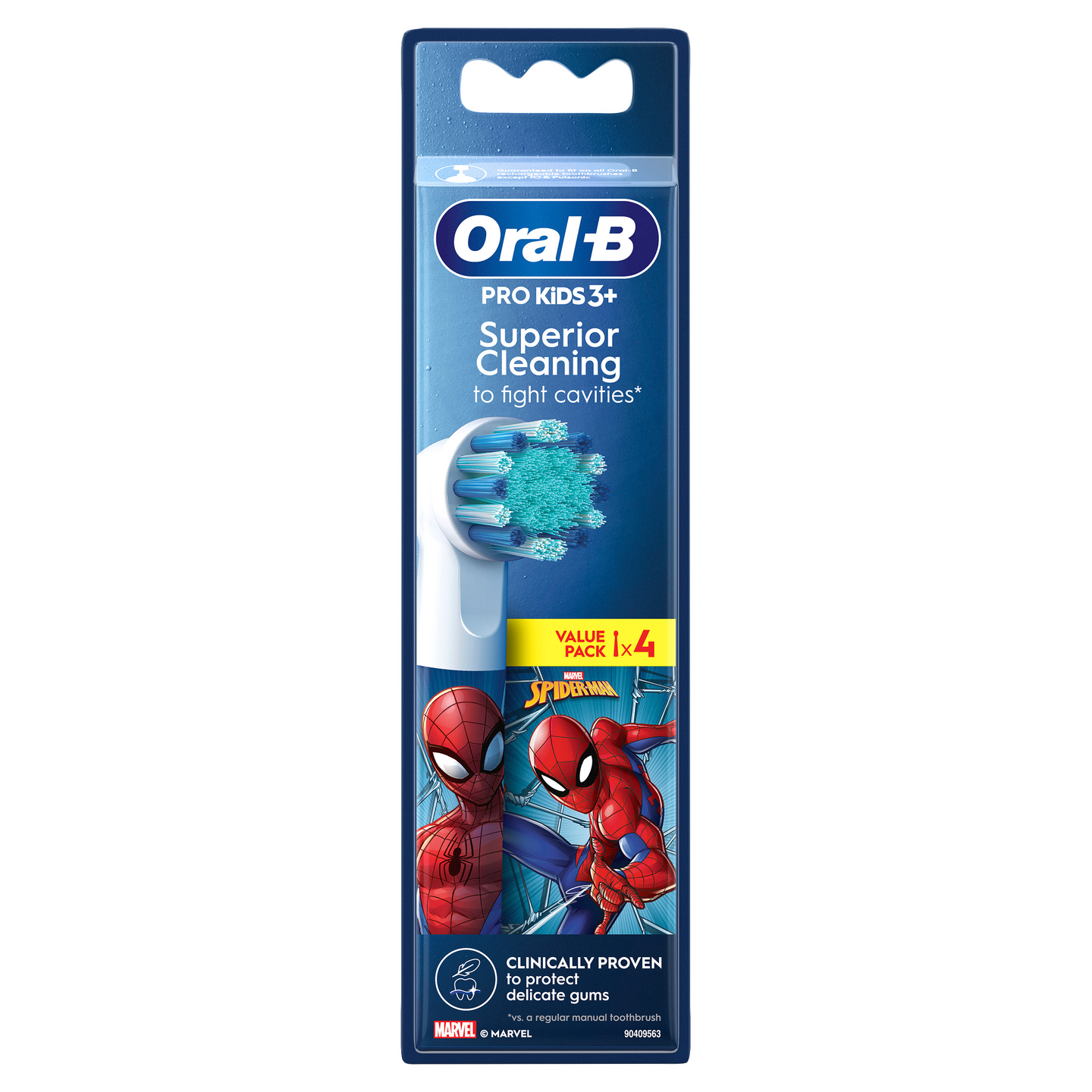 Yli 3-vuotiaille lapsille tarkoitettu Oral-B Kids 3+ -vaihtoharja ilahduttaa Spider-Man -teemalla samalla kun se puhdistaa hellävaraisen tehokkaasti hammaslääkärien suosittelemien Oral-B-hammasharjojen tapaan. Erittäin pehmeät harjakset ja pieni, pyöreä harjaspää on suunniteltu erityisesti lasten hampaille. Vaihtoharja on yhteensopiva kaikkien Oral-B Kids -sähköhammasharjojen kanssa.