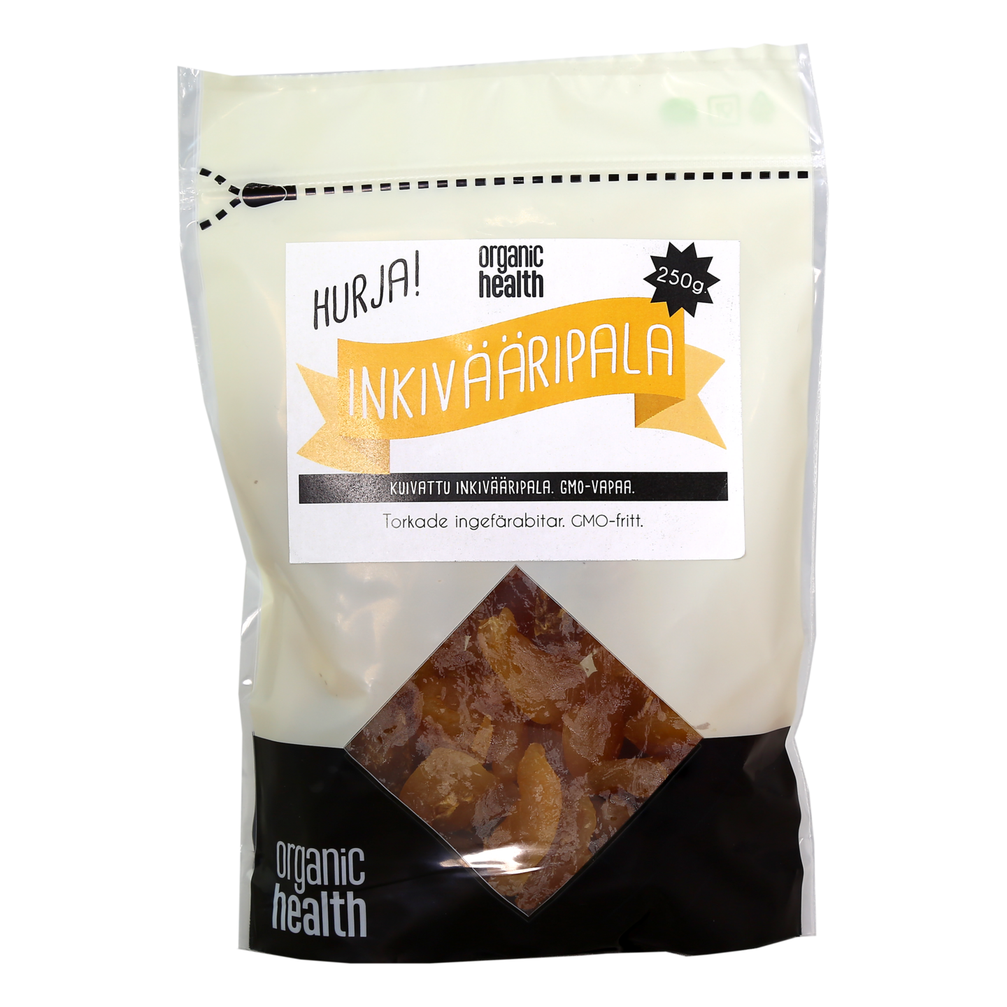 Hurja inkivääri on tujakka maustamaton ja kevyesti sokeroitu inkivääripala. Makeutensa inkivääri saa paahtamisen aikana. Inkiväärin tulisuuden aiheuttaa siinä luontaisesti esiintyvä kapsaisiini, joka tuo poltetta myös chiliin. Mahtava karkkipäivän herkku, joka lohduttaa myös nuhanenää!