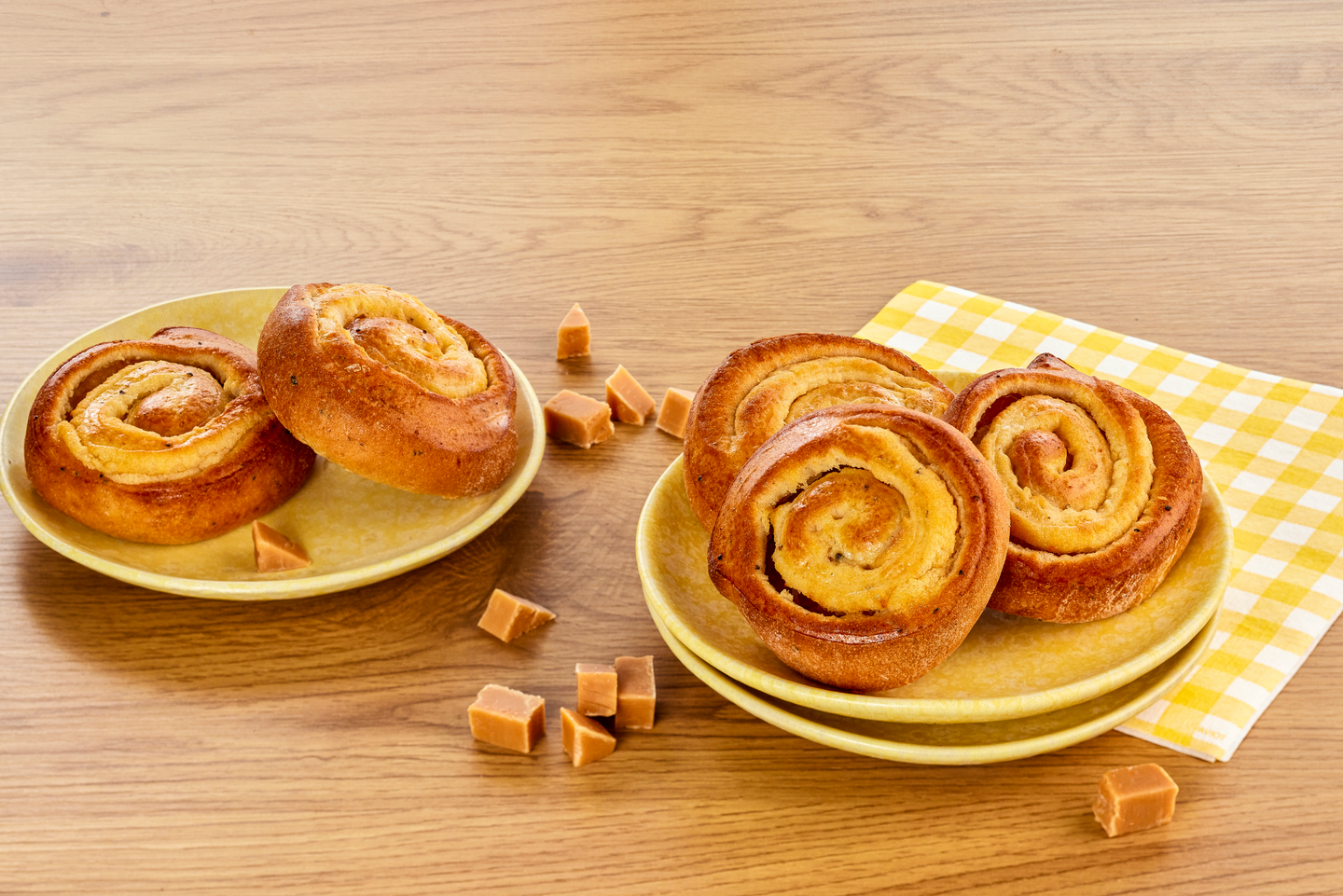 Tuttu maku sekä Pullavan mehevyys ja tuoreustuntu! Pullakierteiden sisään on leivottu herkullinen yhdistelmä täyteläistä toffeeta ja vaniljarahkaa. Kotiuunista arkisiin herkkuhetkiin ja vierasvaraksi.