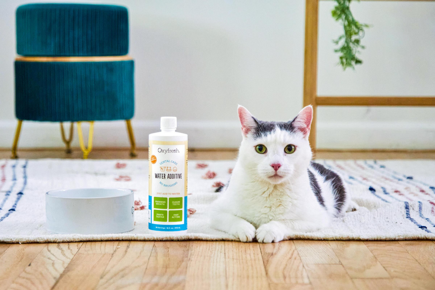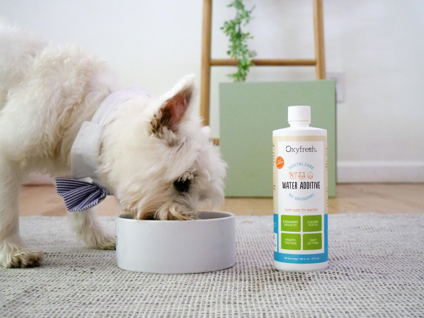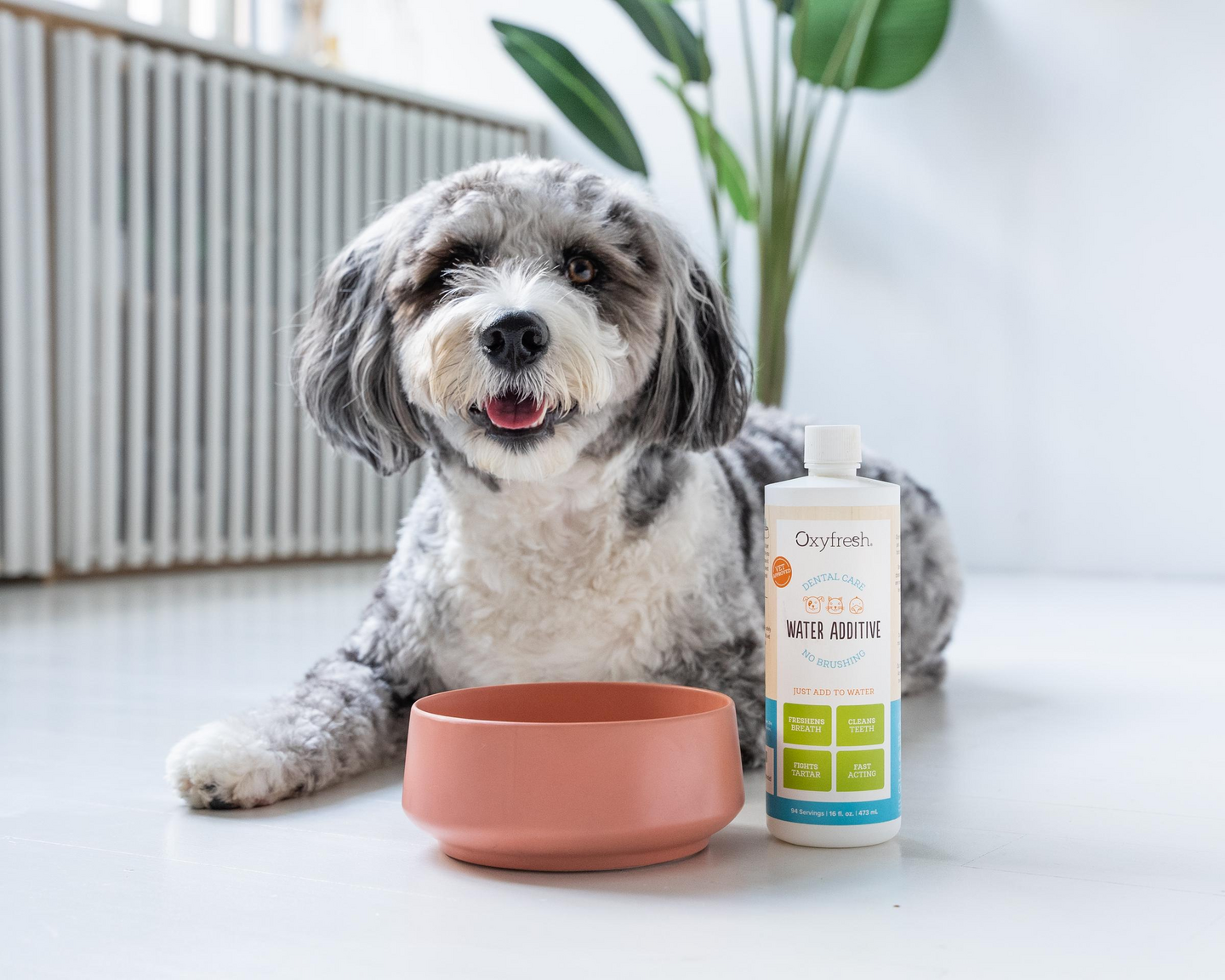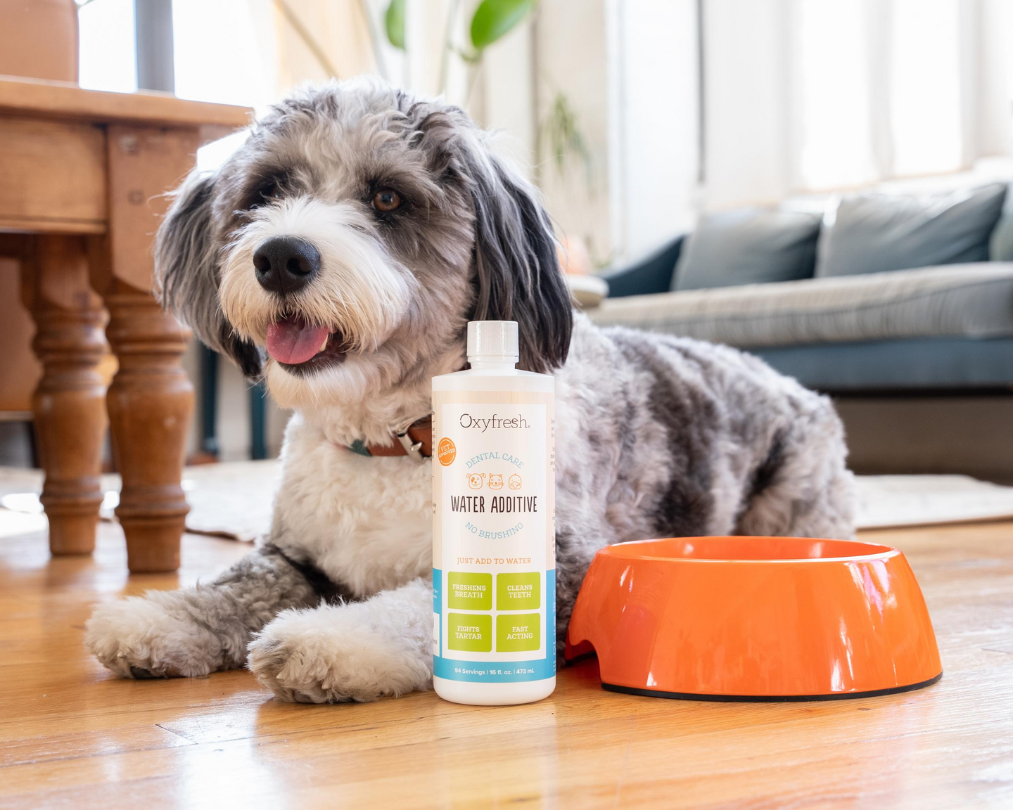 Oxyfresh Water Additive hammasliuos lemmmikin suuhygienian hoitoon. Juomaveteen lisättävä riittoisa hammasliuos on vaivattomin ratkaisu lemmikkisi raikkaaseen hengitykseen sekä ehkäisee plakin ja hammaskiven muodostumista. Lisää vain pieni määrä liuosta koiran tai kissan juomaveteen! Liuos ei sisällä hajusteita tai makuaineita, joten nirsoinkaan lemmikki ei huomaa sitä.